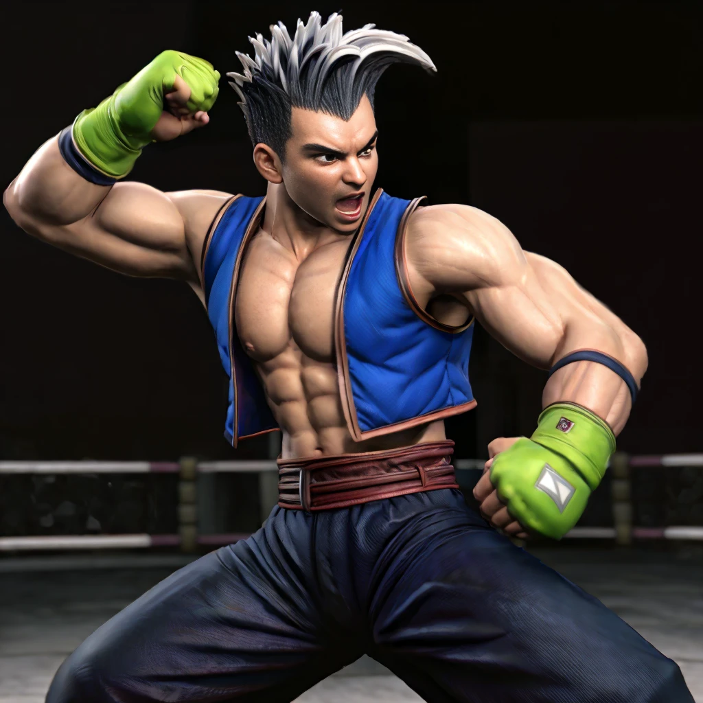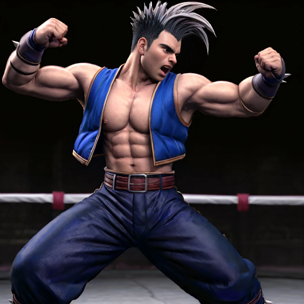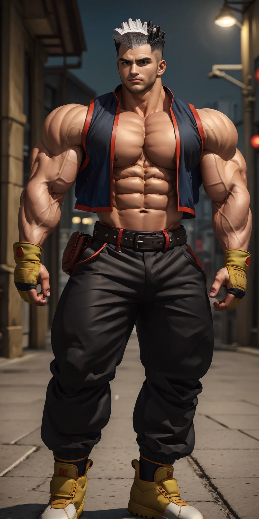 chujiwu, vest, 1boy, pants, belt, gloves, white and black hair, spiked hair,