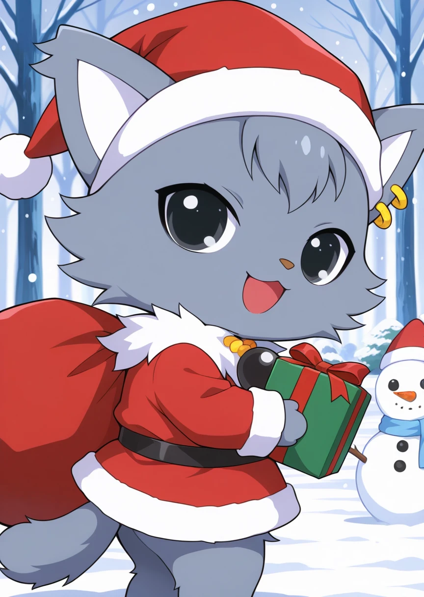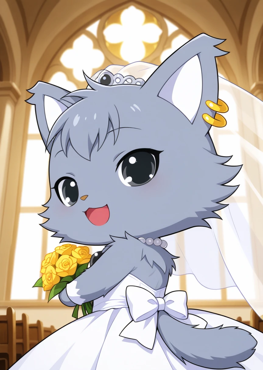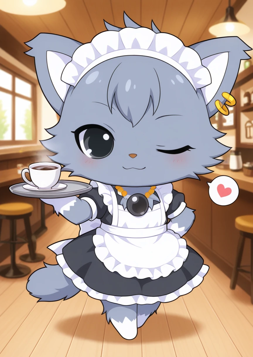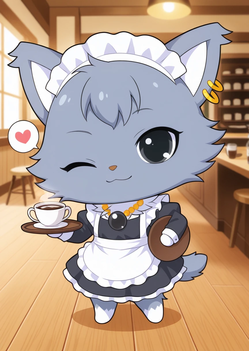 prompts: dian \(jewelpet\), furry, animal ears, gray fur, earrings, necklace, black eyes, chibi,