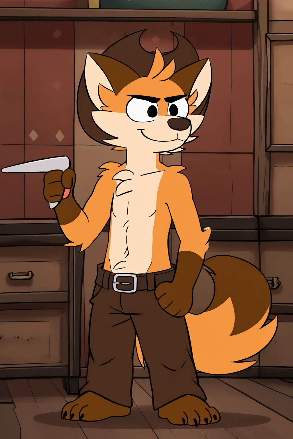 main tags: toddhayseed, furry male, fox boy, body fur, orange fur, two-tone fur, short hair, fox ears, black eyes, animal nose, chest tuft, fox tail
