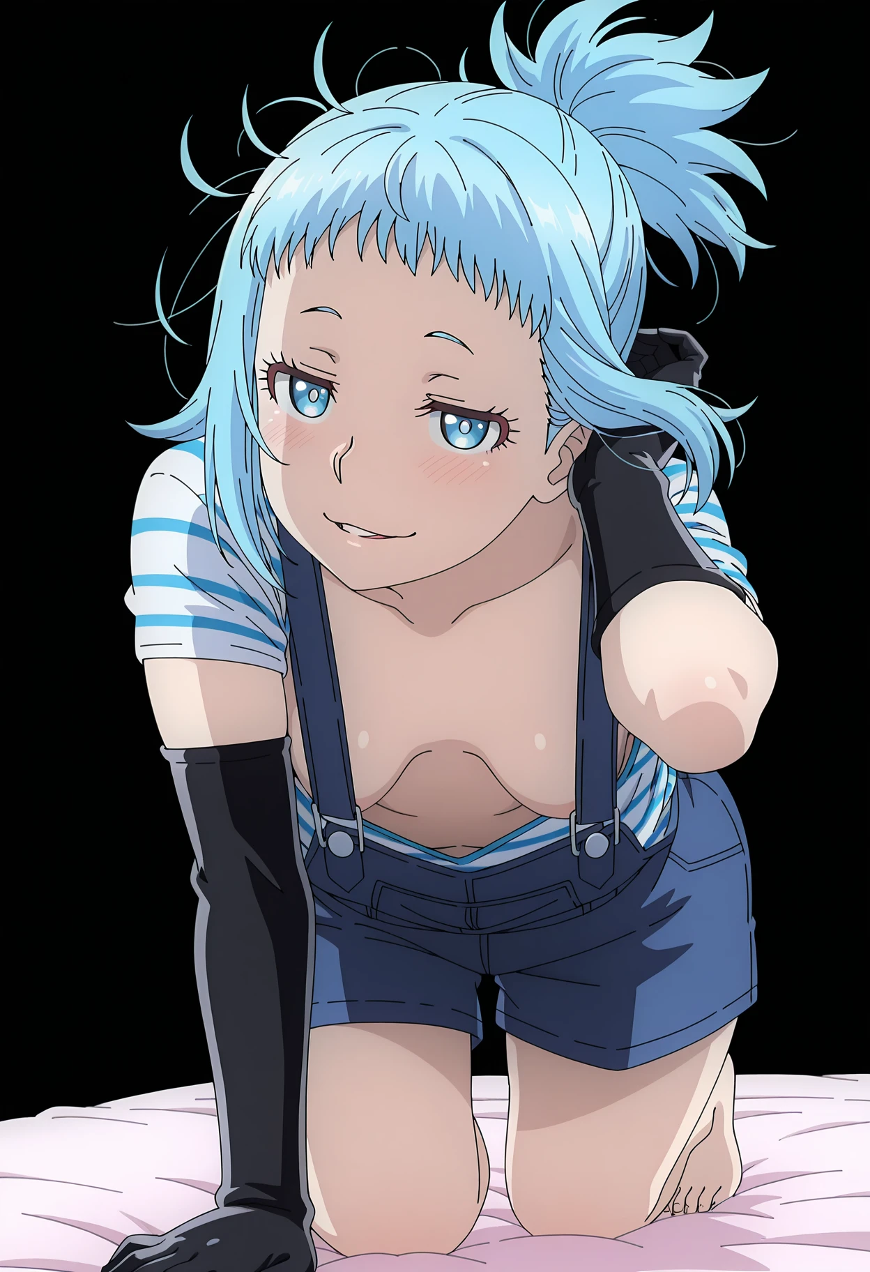 1girl, mero, short hair, blue hair, bangs, ponytail, short ponytail, blue eyes, small breasts