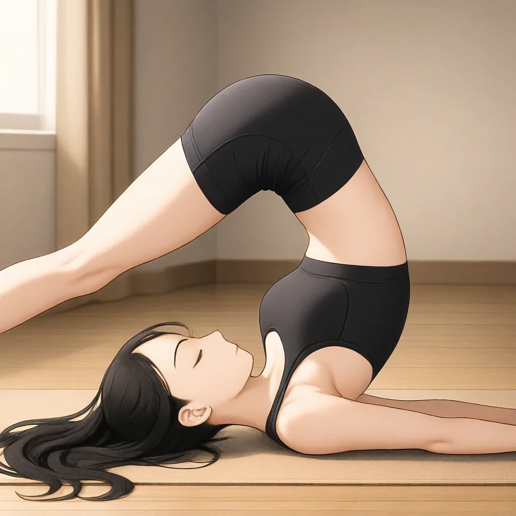 plow pose, inverted pose, lying on back, legs over head, flexibility, yoga pose,