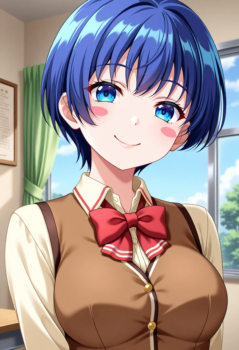 hinaww, blue eyes, blue hair, short hair, medium breasts,