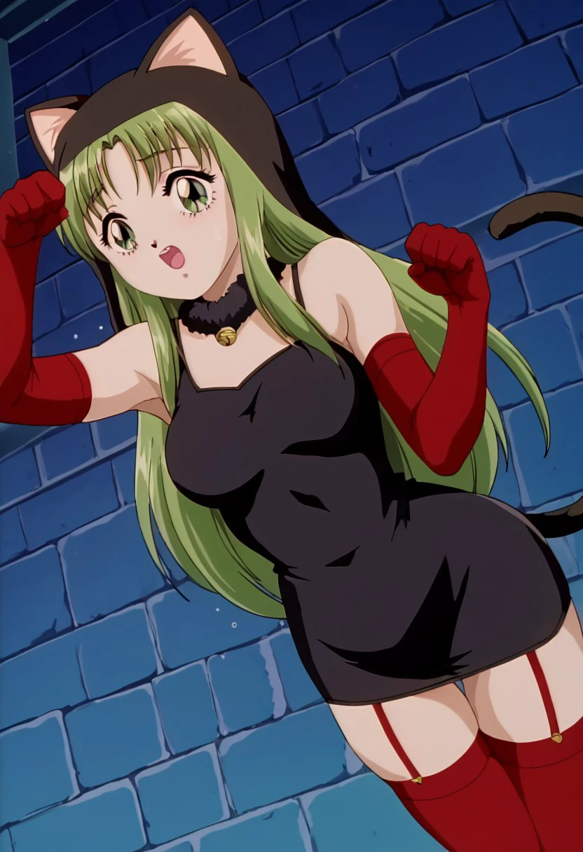 An anthropomorphic rabbit is held in a cell as a ??? slave. Soon, a catgirl enters her room and has ??? with the rabbit through the cell. Later, a man enters and punishes the catgirl for wandering off and then proceeds to ???? her.