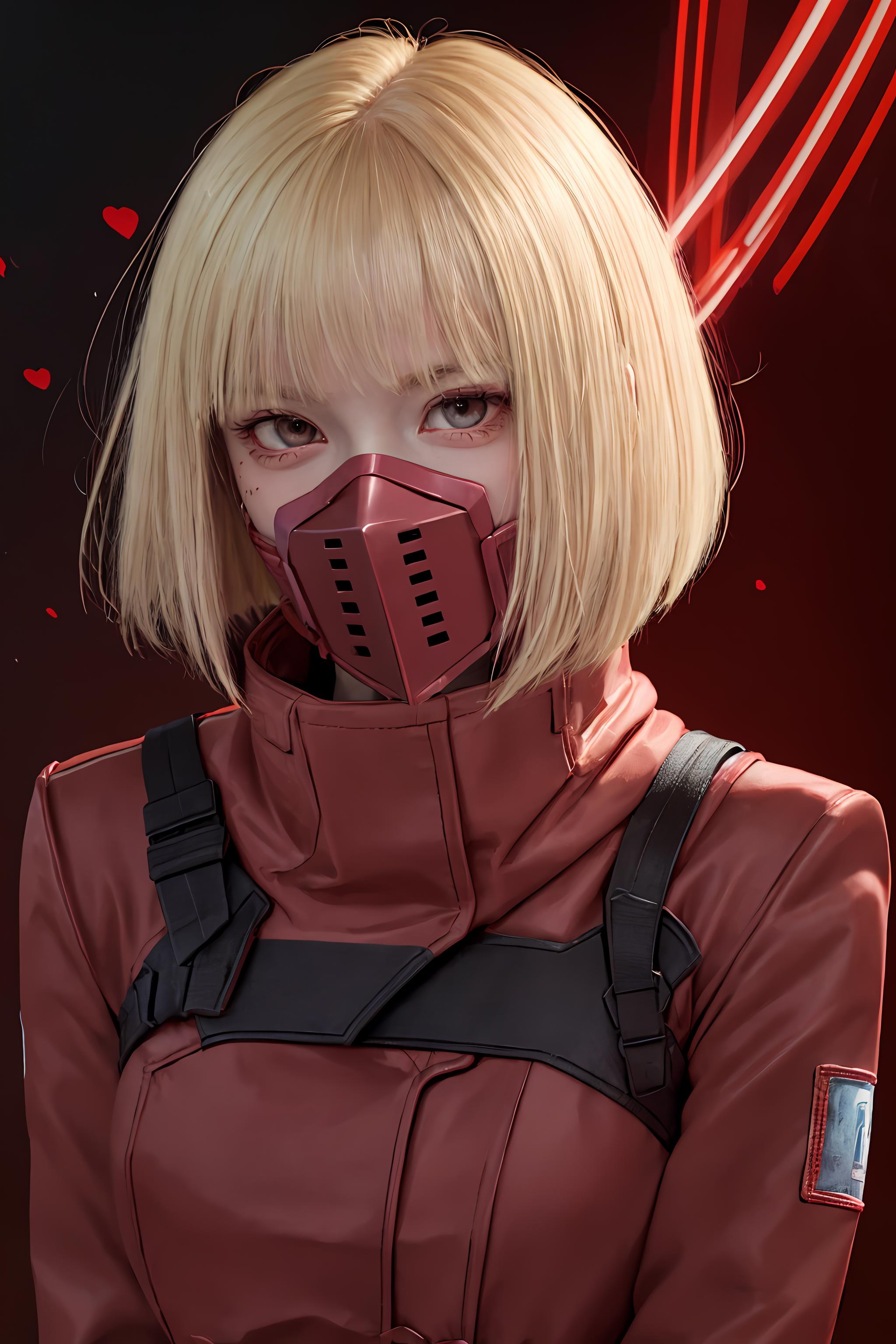1girl, solo, short hair, blonde hair, red eyes, mask