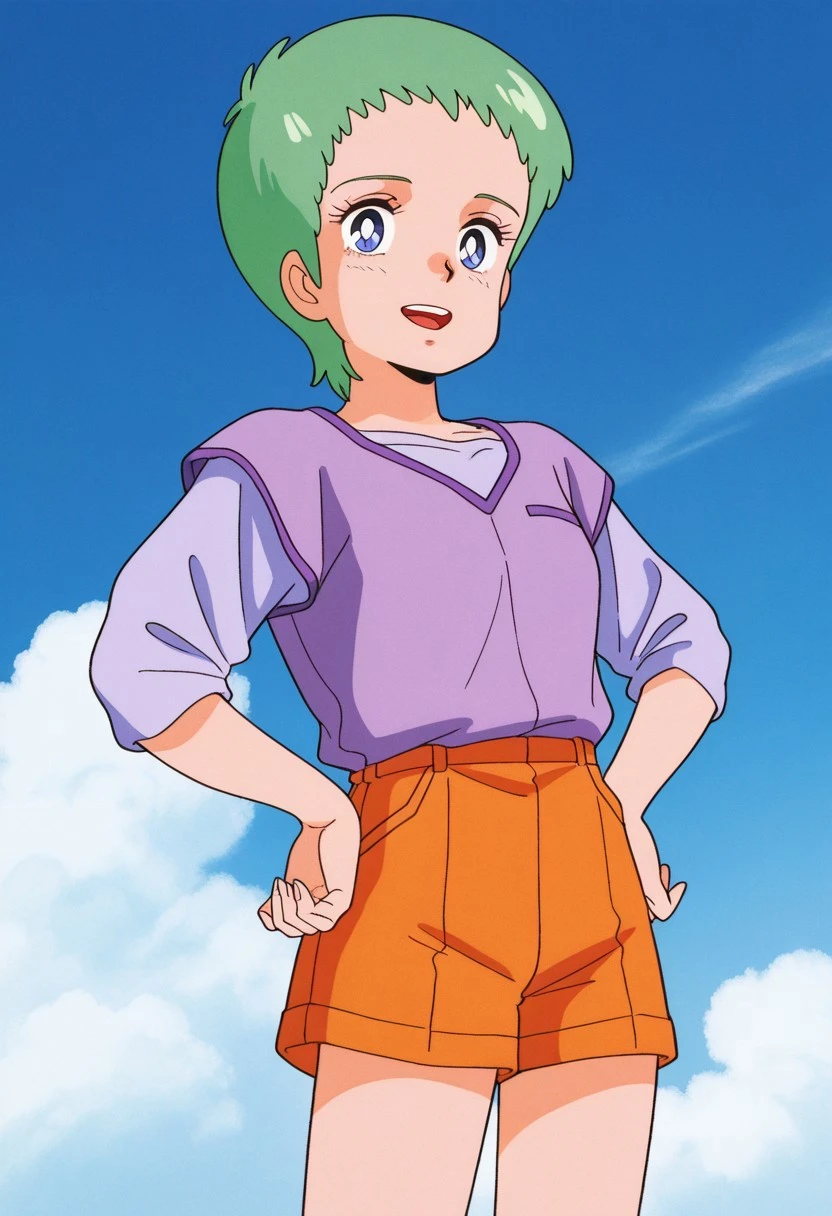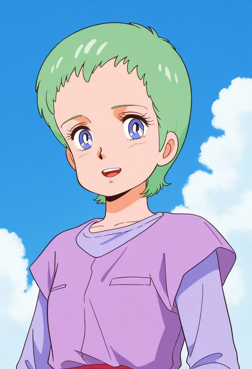 ② katue pearson,1girl,short hair,green hair,forehead,