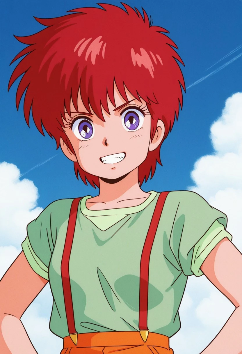 ④ sharron publin,1girl,purple eyes,red hair,short hair,spiked
