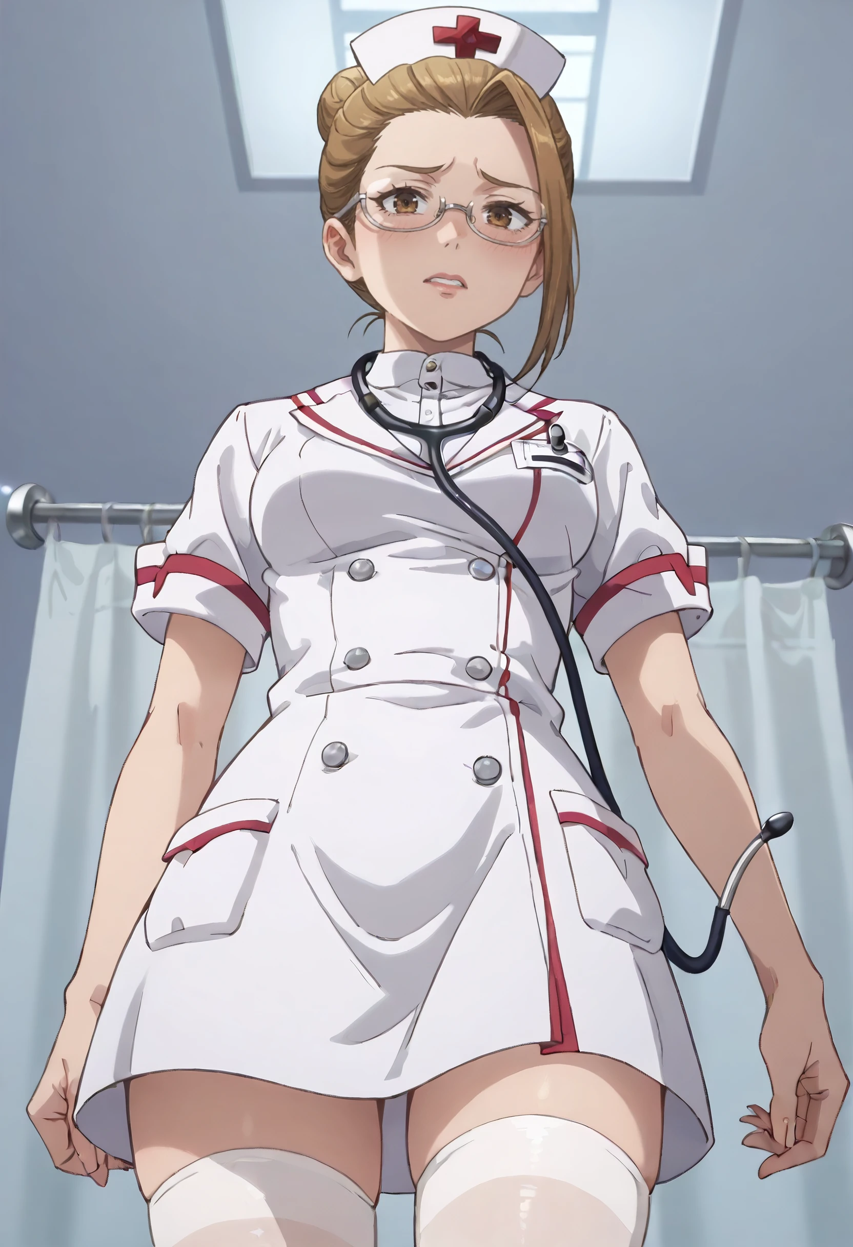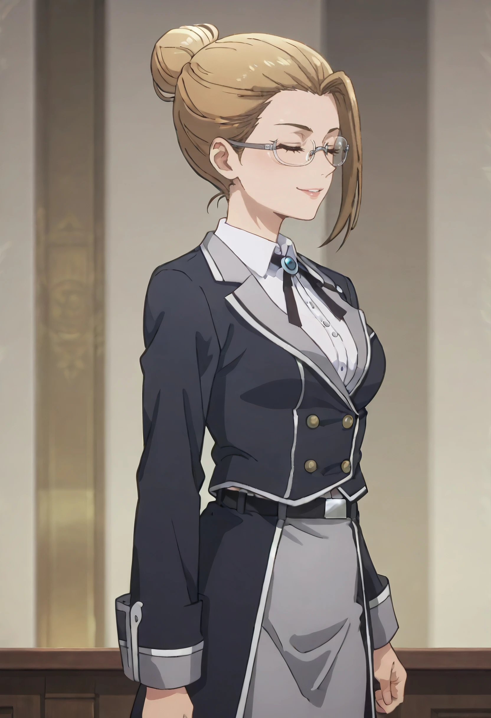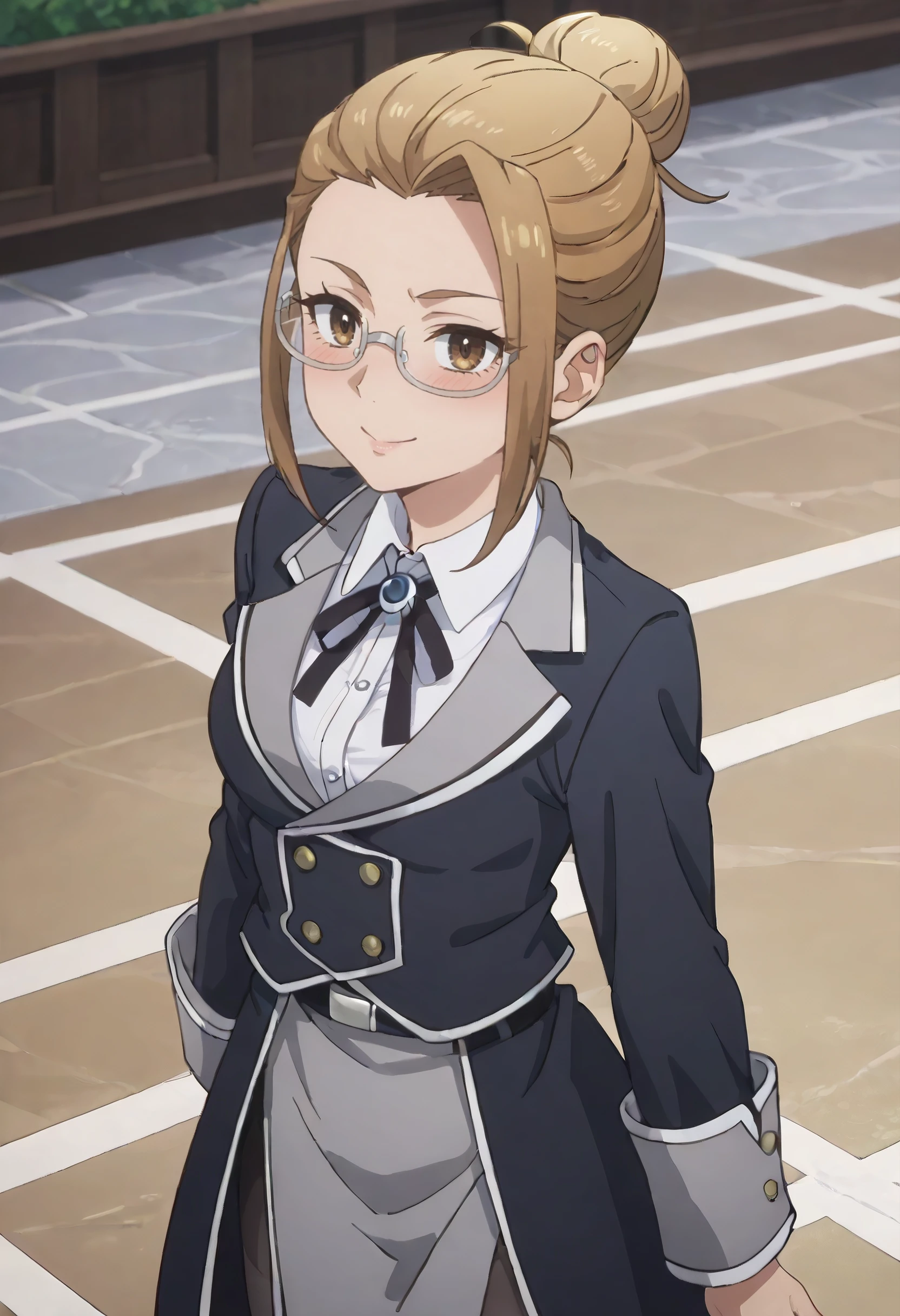 GirFili, brown hair, short hair, brown eyes, glasses, semi-rimless eyewear, under-rim eyewear, single bun, hair bun,
