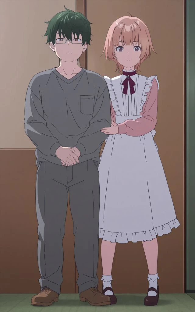 1boy,kenta yamazaki,fat boy, fat man, male focus,he has glasses,semi-rimless eyewear, green hair, brown eyes,