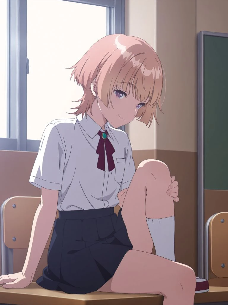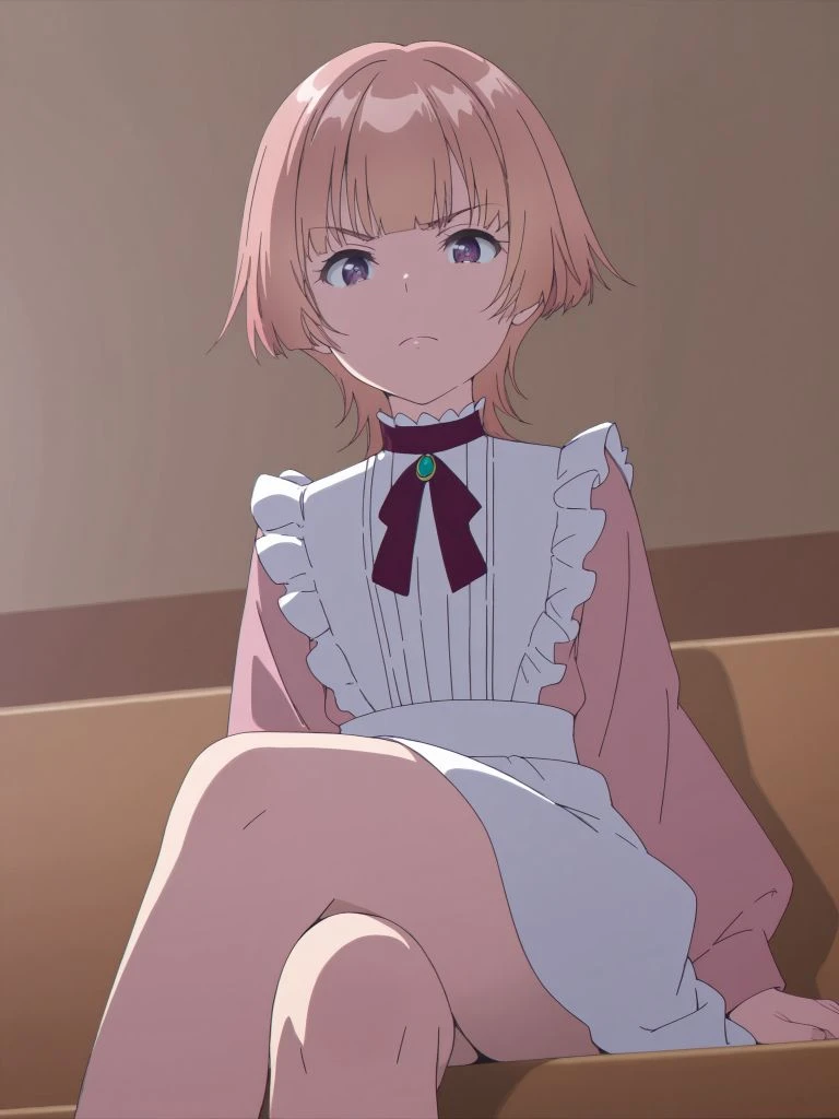 miki2, pink hair,purple eyes,short hair,bangs,