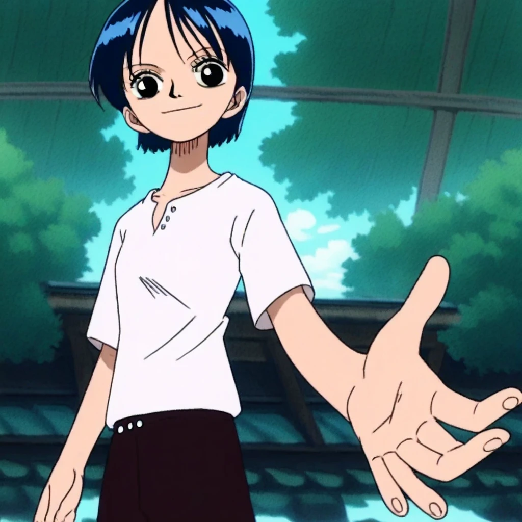 kuina shimotsuki, one piece, short hair, dark blue hair, black eyes,