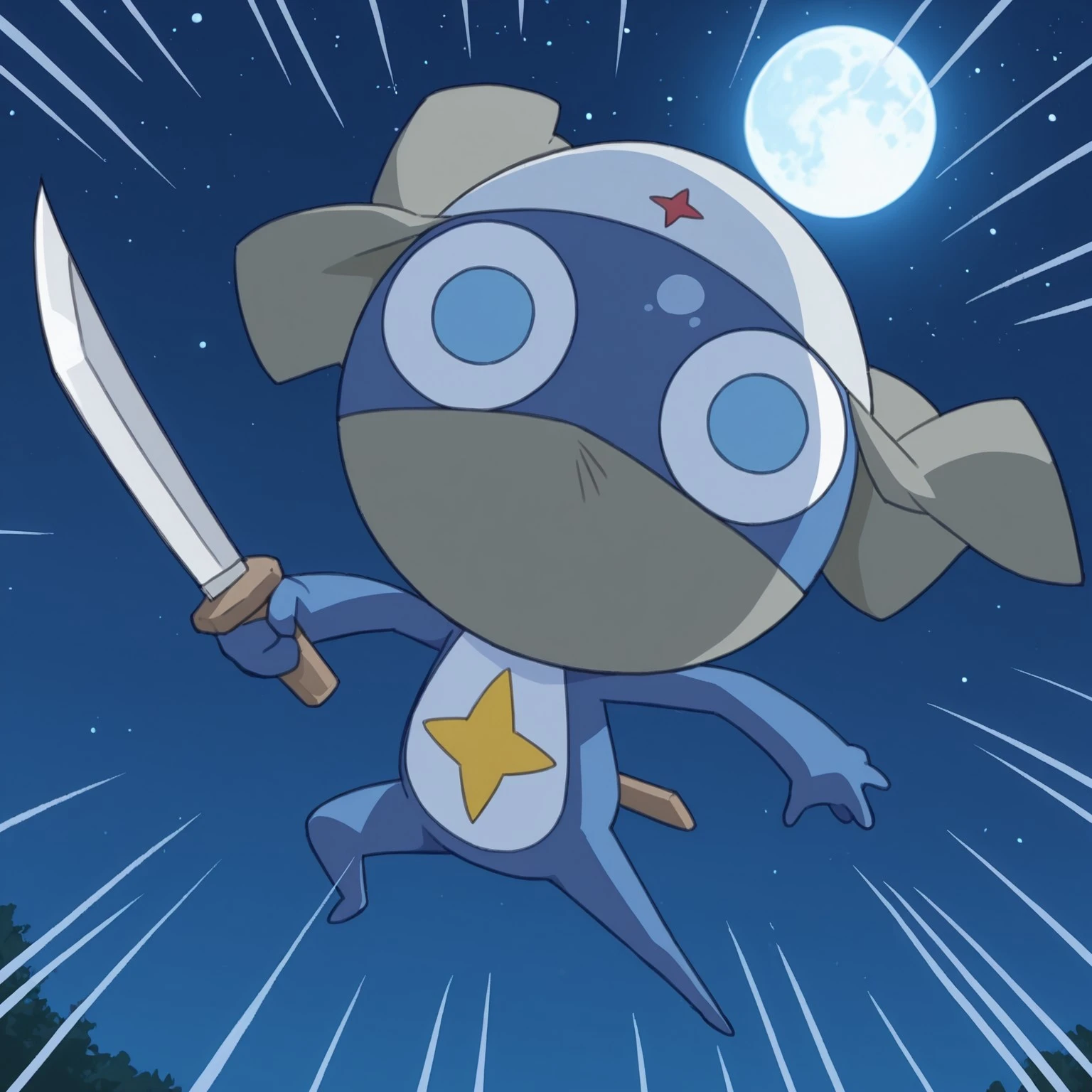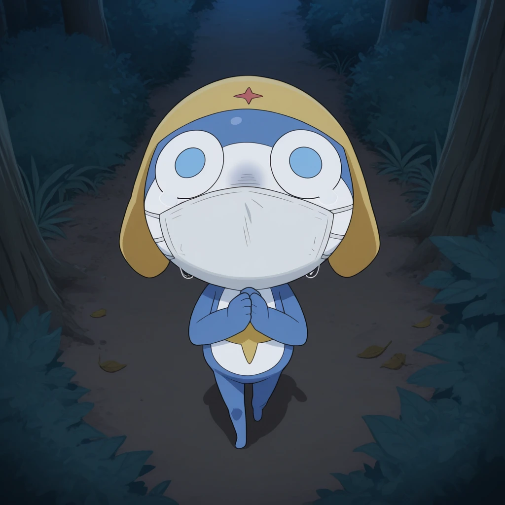 Tags (Zeroro/Chibi Dororo): zeroro, furry male, frog, two-tone skin, white skin, amphibian, alien, creature, blue skin, face mask, white mask, yellow hat, star (symbol),