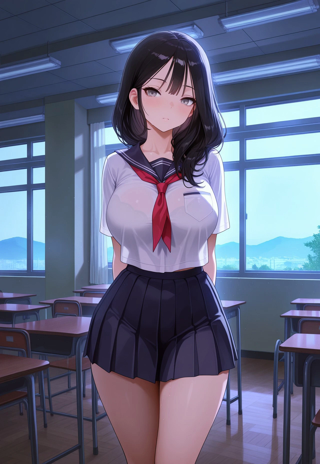 ventana, large breasts, grey eyes, black hair, long hair,