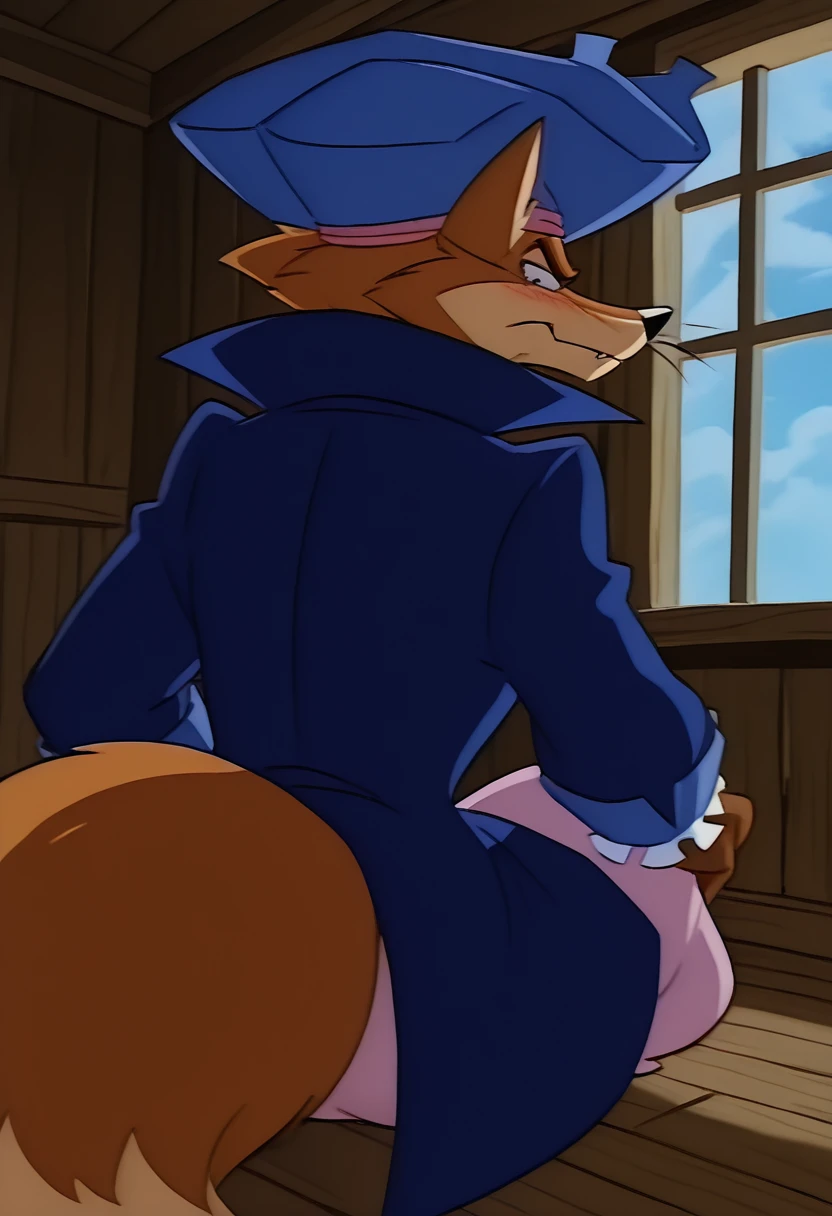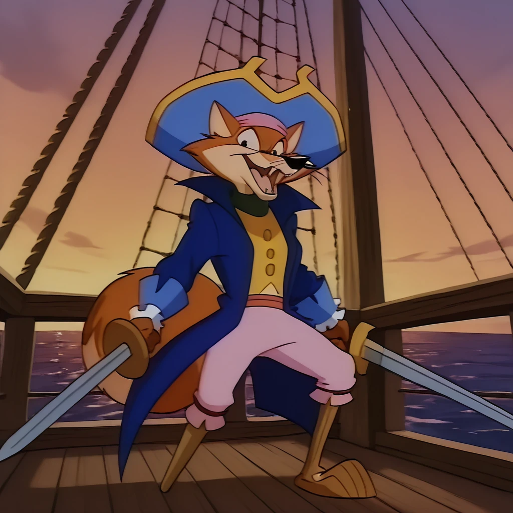LOTISilver, furry, fox, brown fur, two-tone fur, whiskers, snout, fox tail, animal ears, pirate costume, pirate hat, peg leg