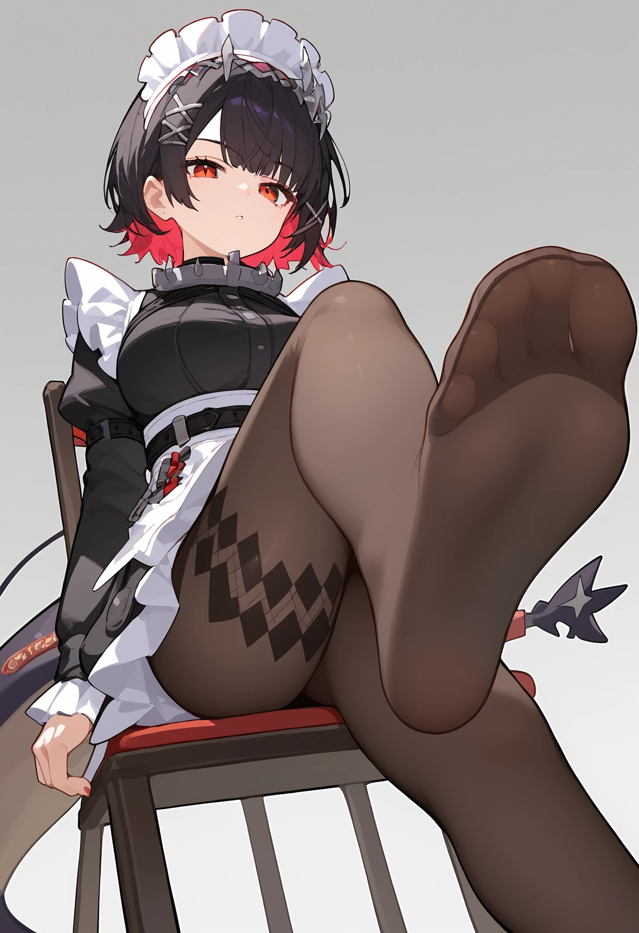 maid, maid headdress, pantyhose,