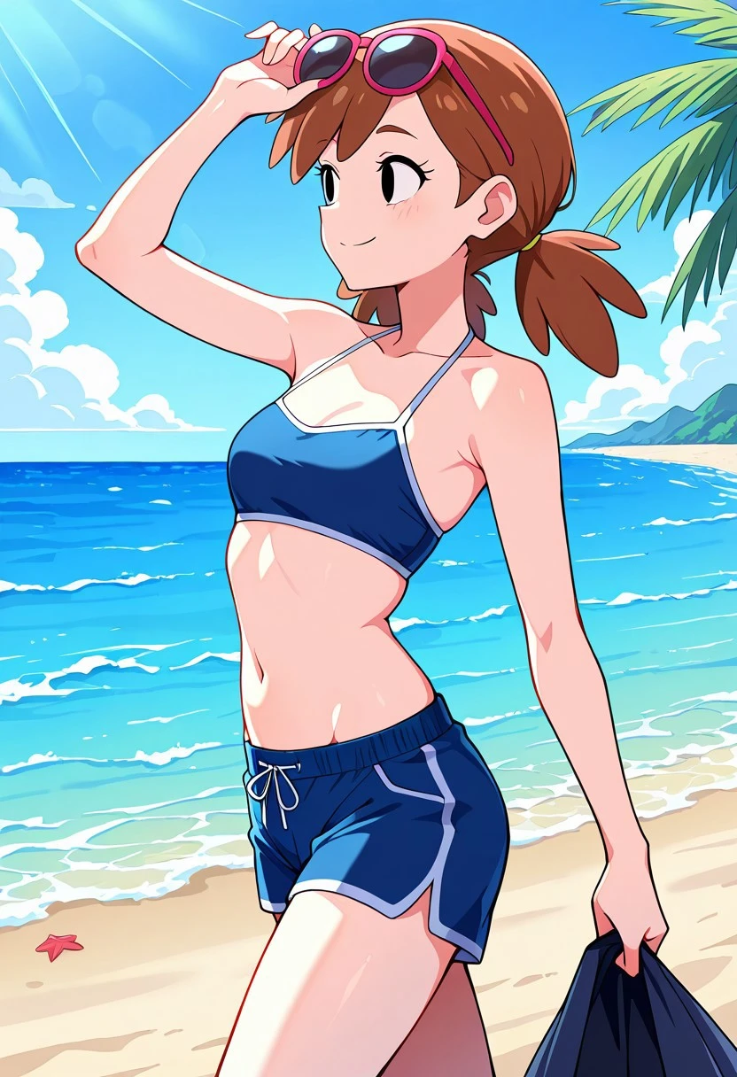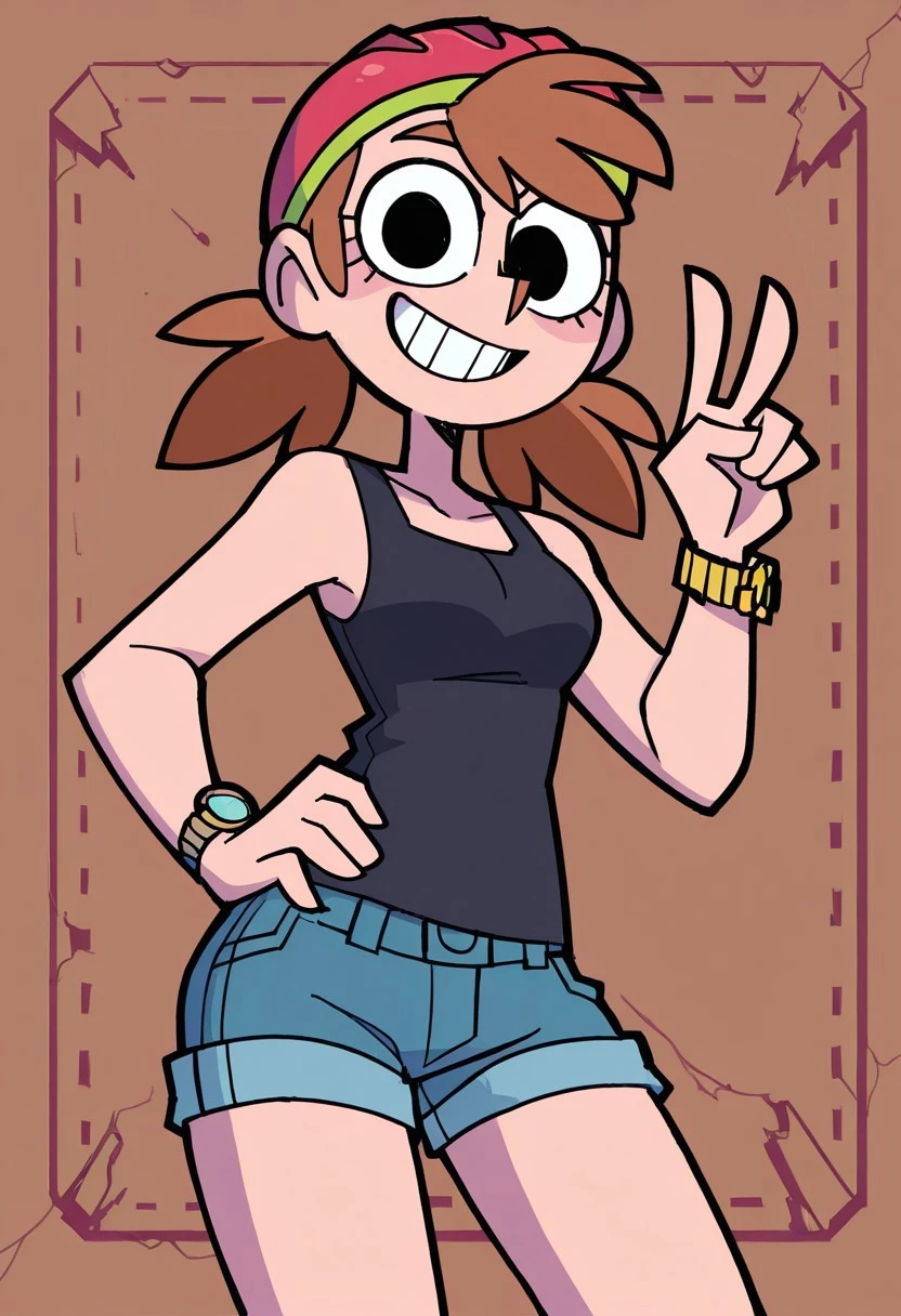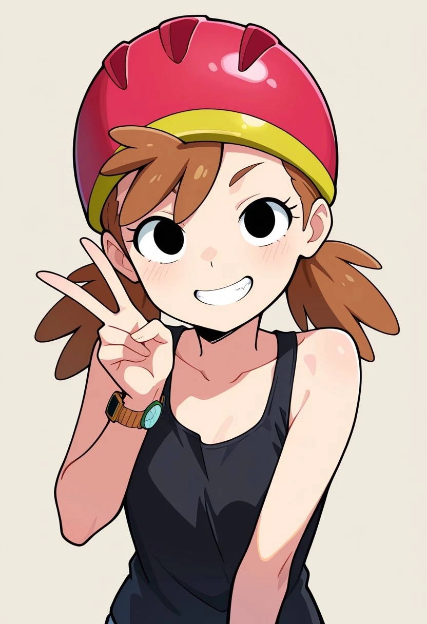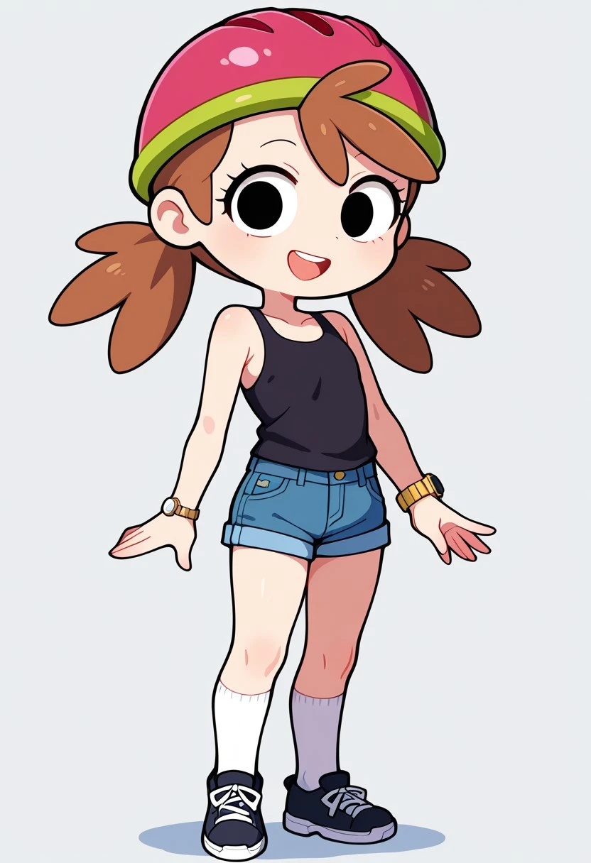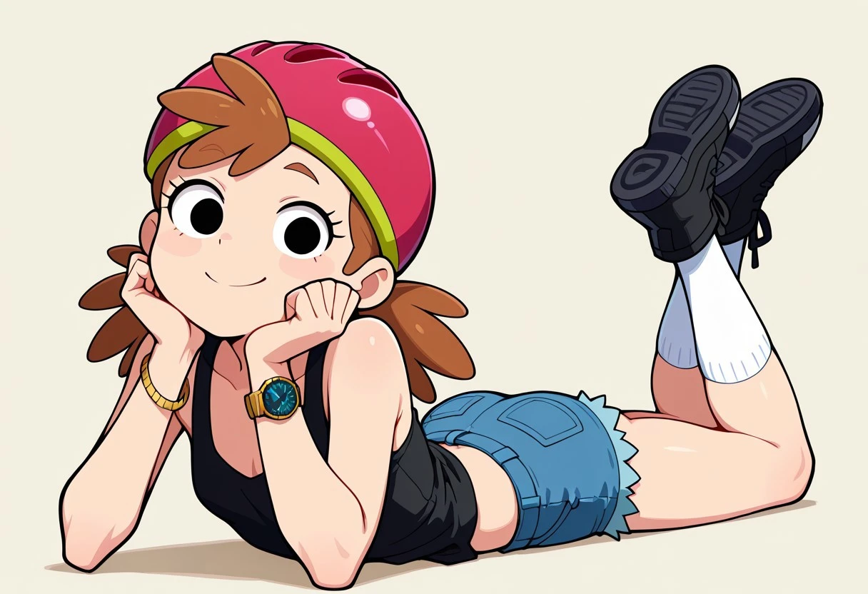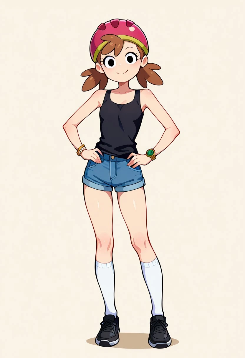 amyoutfit, helmet, jewelry, bracelet, watch, tank top, shorts, kneehighs, black footwear