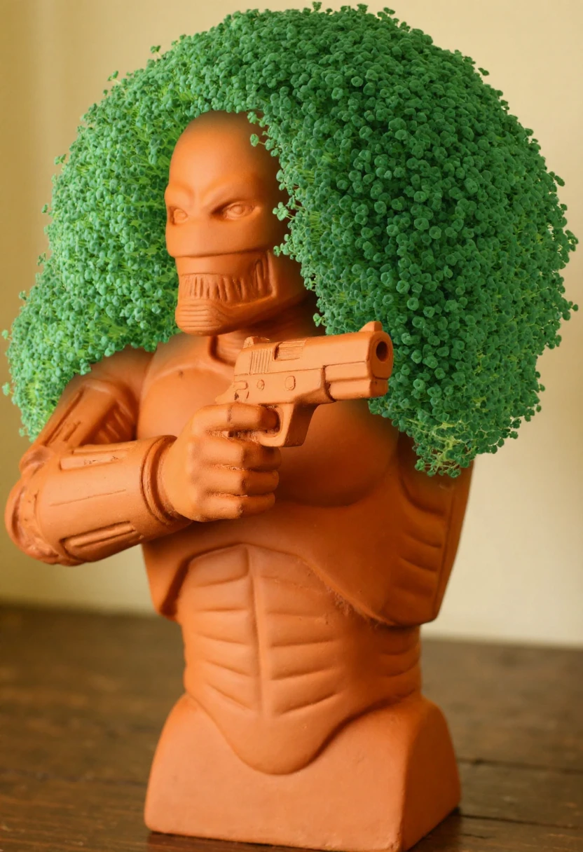 Prompting: Photograph of a terracotta clay (SUBJECT), adorned with a lush, vibrant green plant.