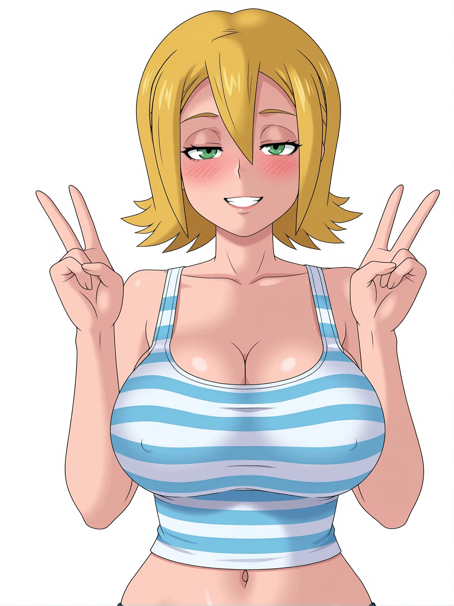 susan \(intimate cruise\), 1girl, short hair, blonde hair, green eyes,