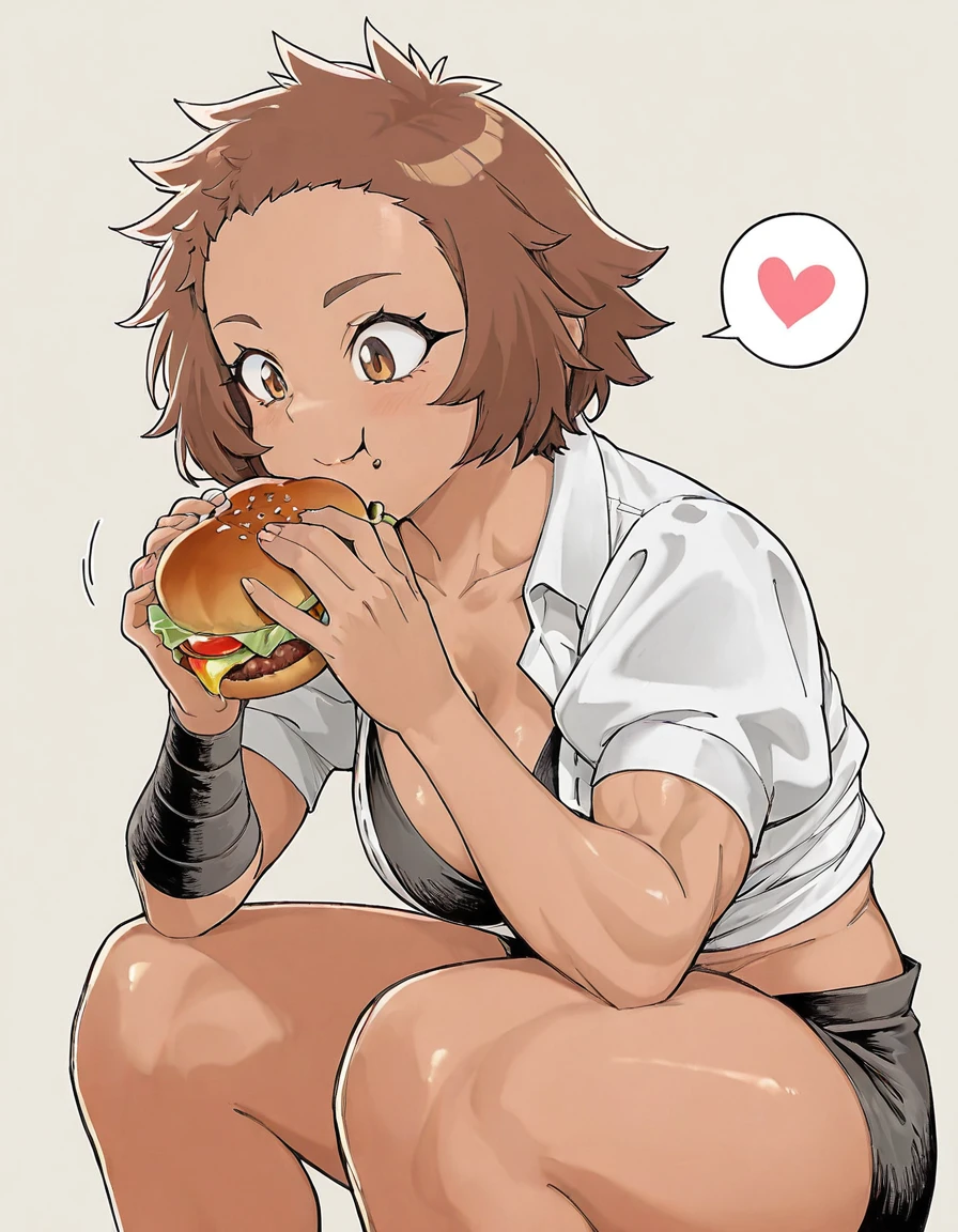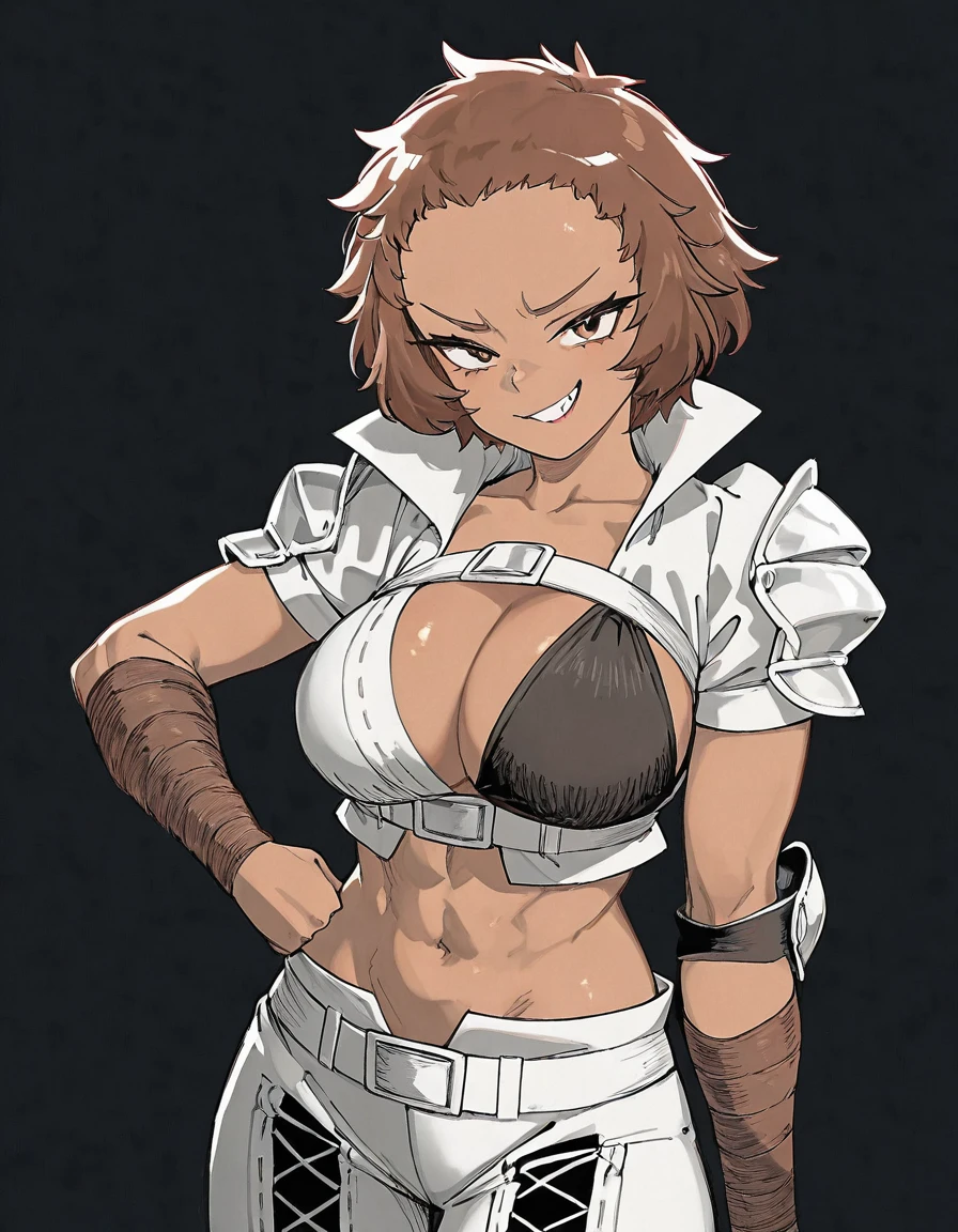 1girl, solo, clariennechan, short hair, spiky hair, dark-skinned female