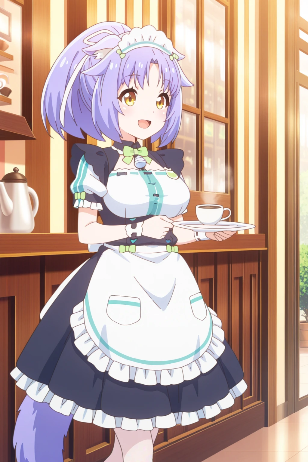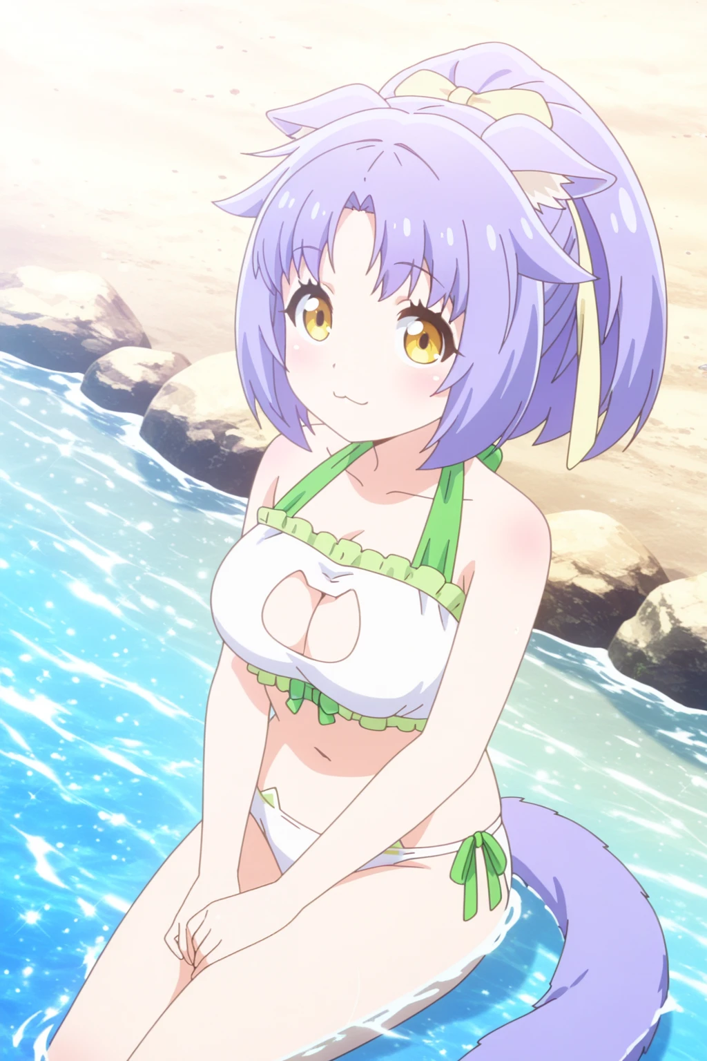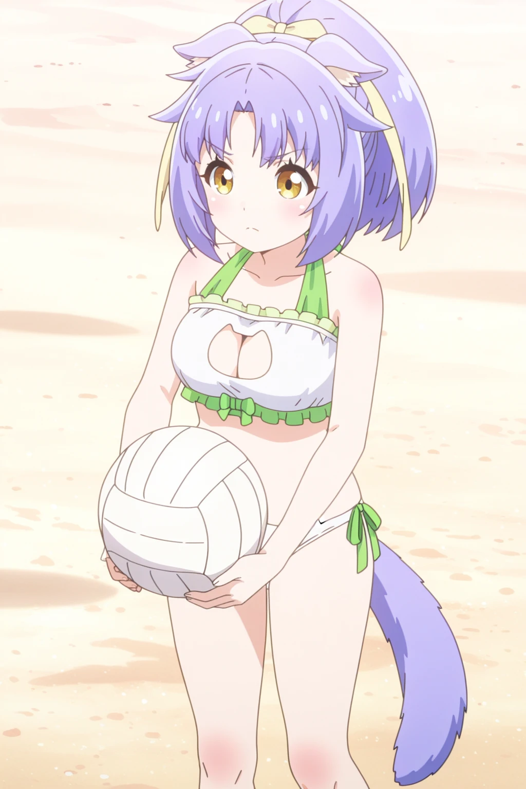 Additionally, when generating her from the back/side, the model doesn't know whether or not to include a flap for her tail, sometimes generating random holes for her tail to fit through. You can try putting tail through clothes in the negatives to resolve this.