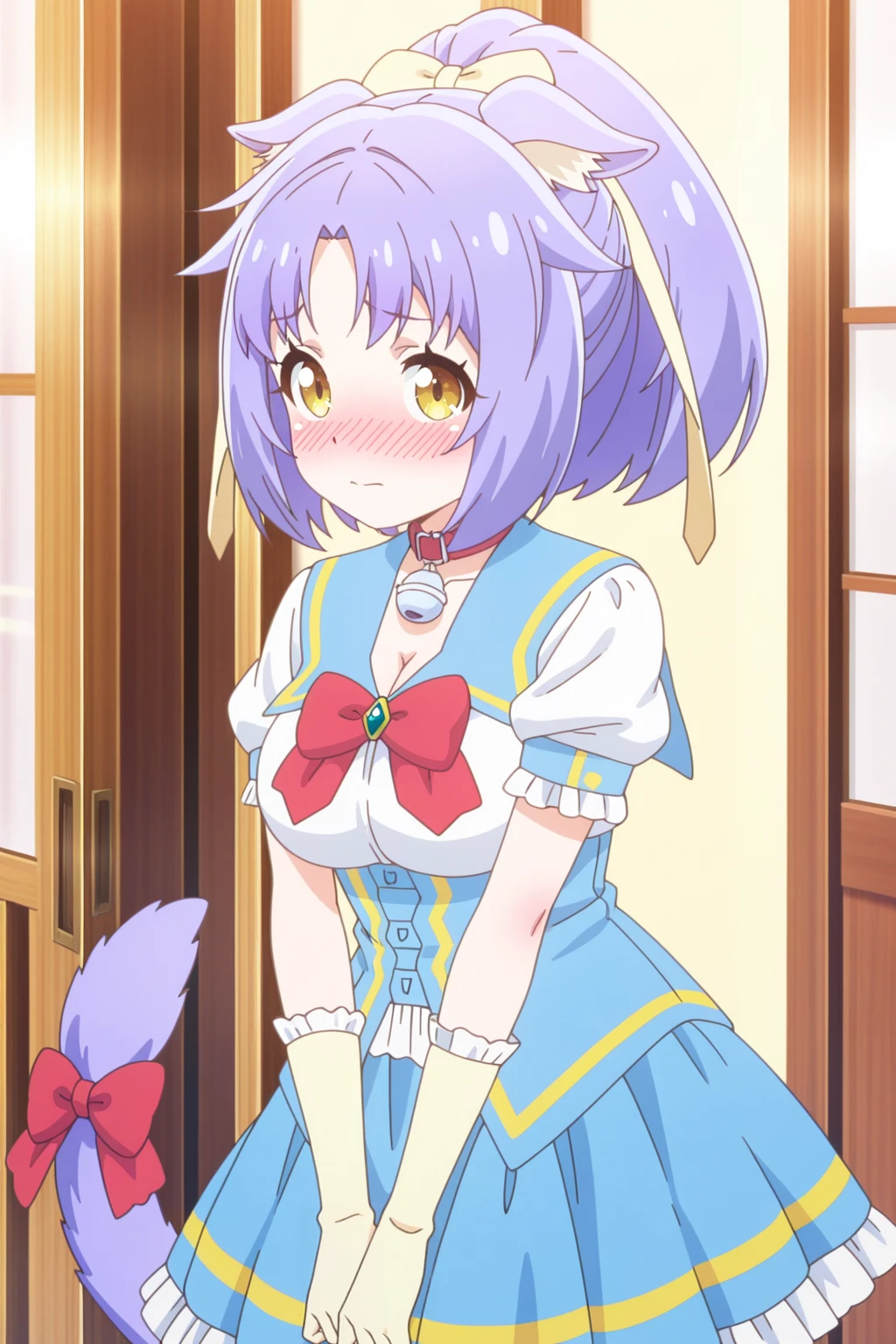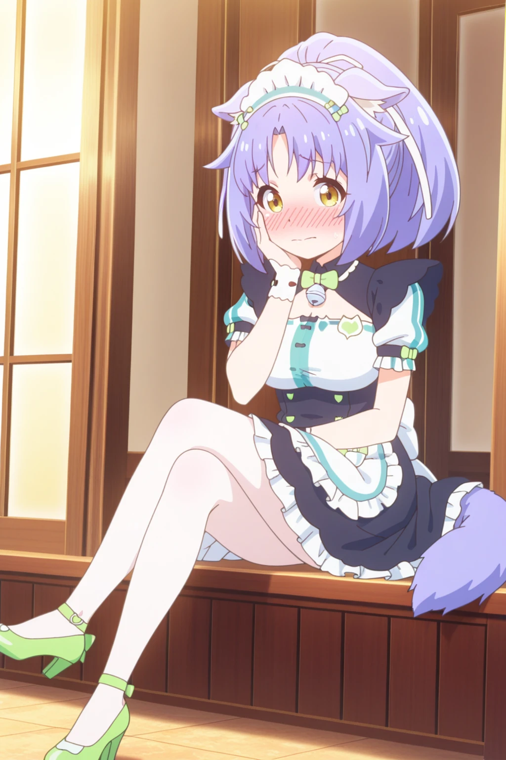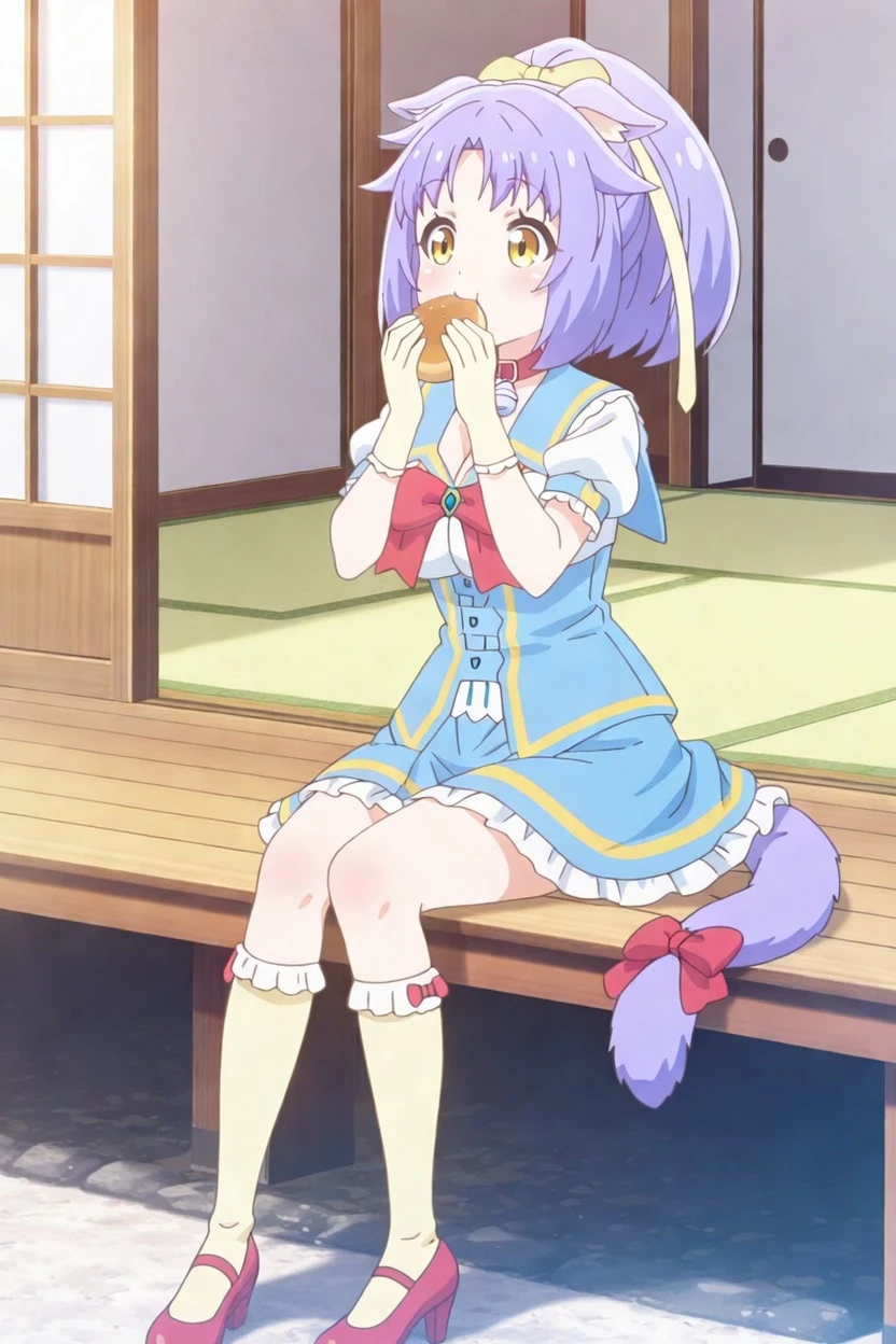 Unfortunately due to the nature of a lot of her outfits having a metric crap ton of bows/ribbons, sometimes the model hallucinates bows and ribbons on random parts of her body. Most notably it pretty much generates a red bow on her socks in her default outfit every time, much to my dismay, even though none of the images in the dataset had that. I was unable to figure out how to prevent this despite my best efforts. It also will try to generate patches in random places on some of her outfits as well.
