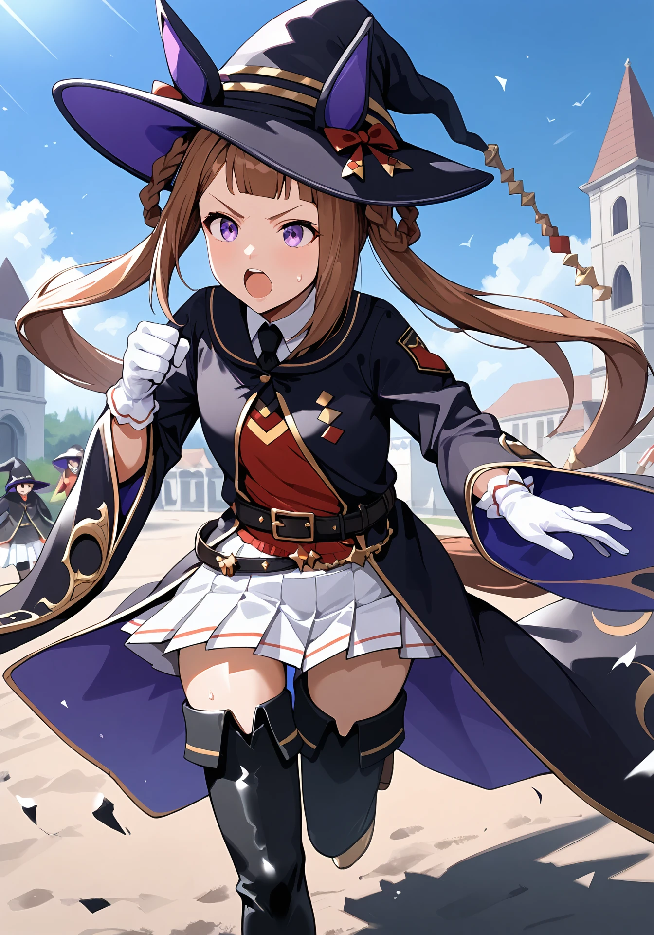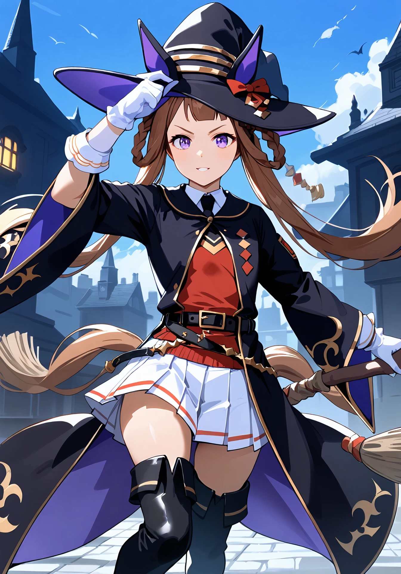 STosho,horse girl,long hair,brown hair,purple eyes,witch hat
