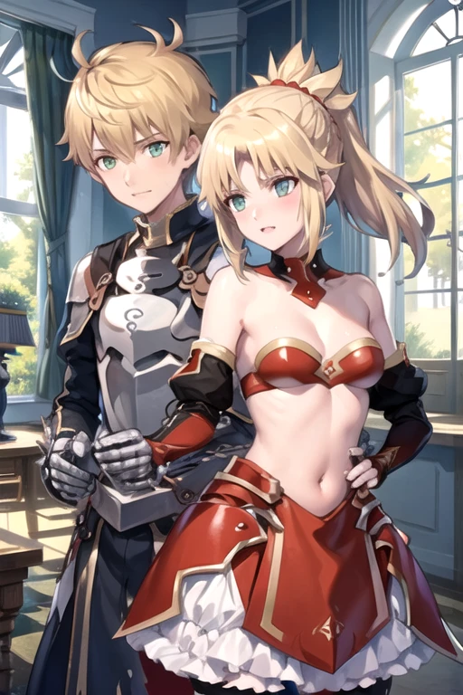 ArthurMordred, hetero, 1boy, 1girl, standing, smile, cowboy shot