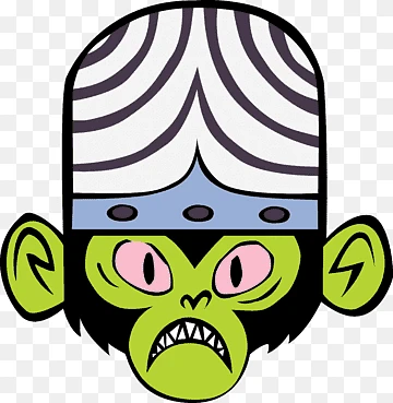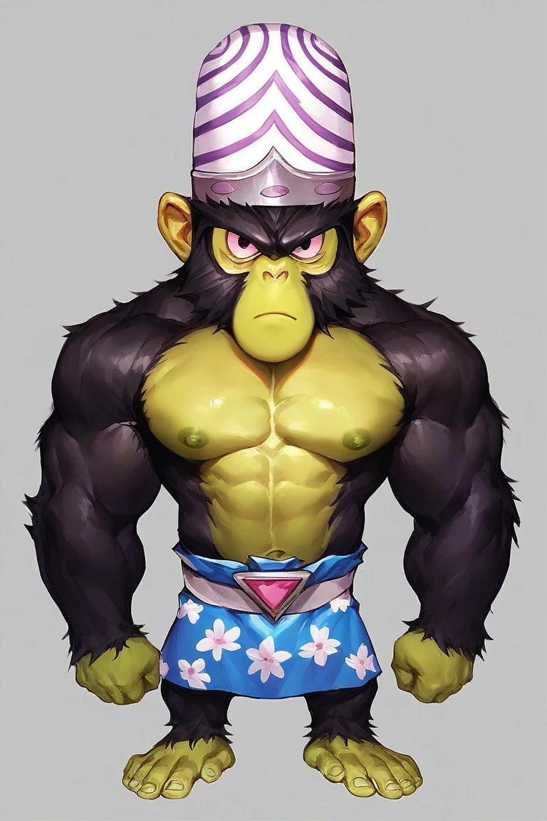 Chimpanzee, mojo jojo, green skin, black back fur, helmet