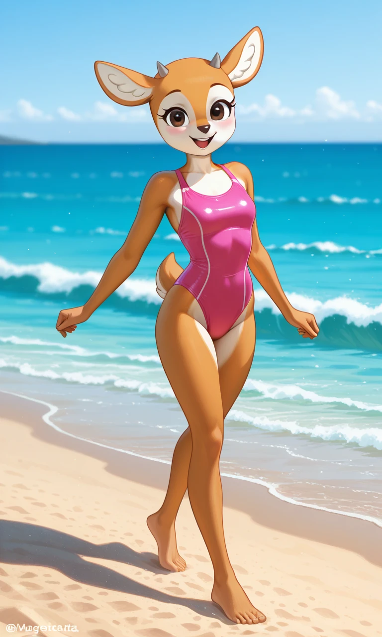 prompts: orange fur, short antlers, anthro deer, Tsunoda_(aggretsuko)
