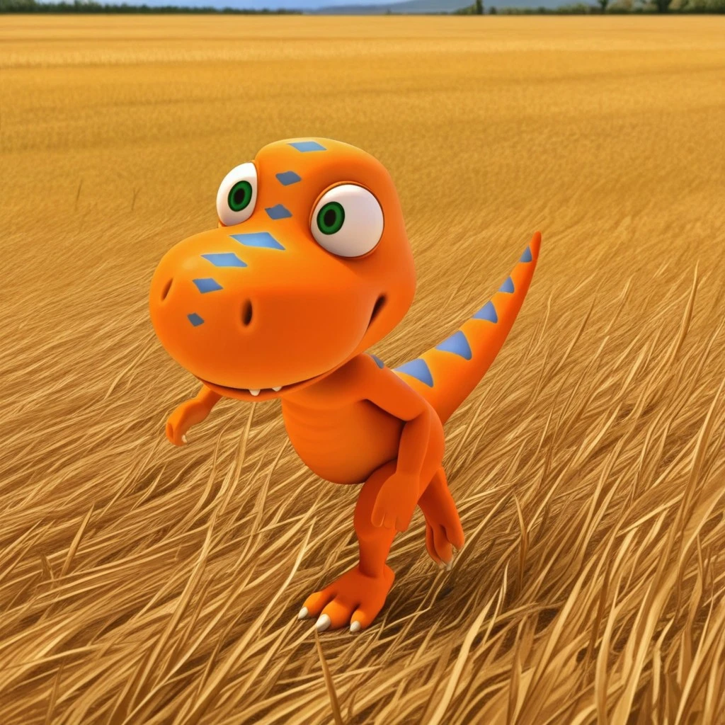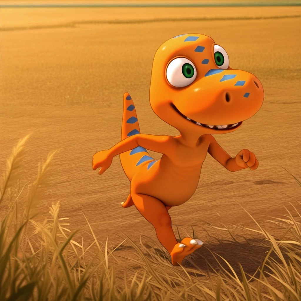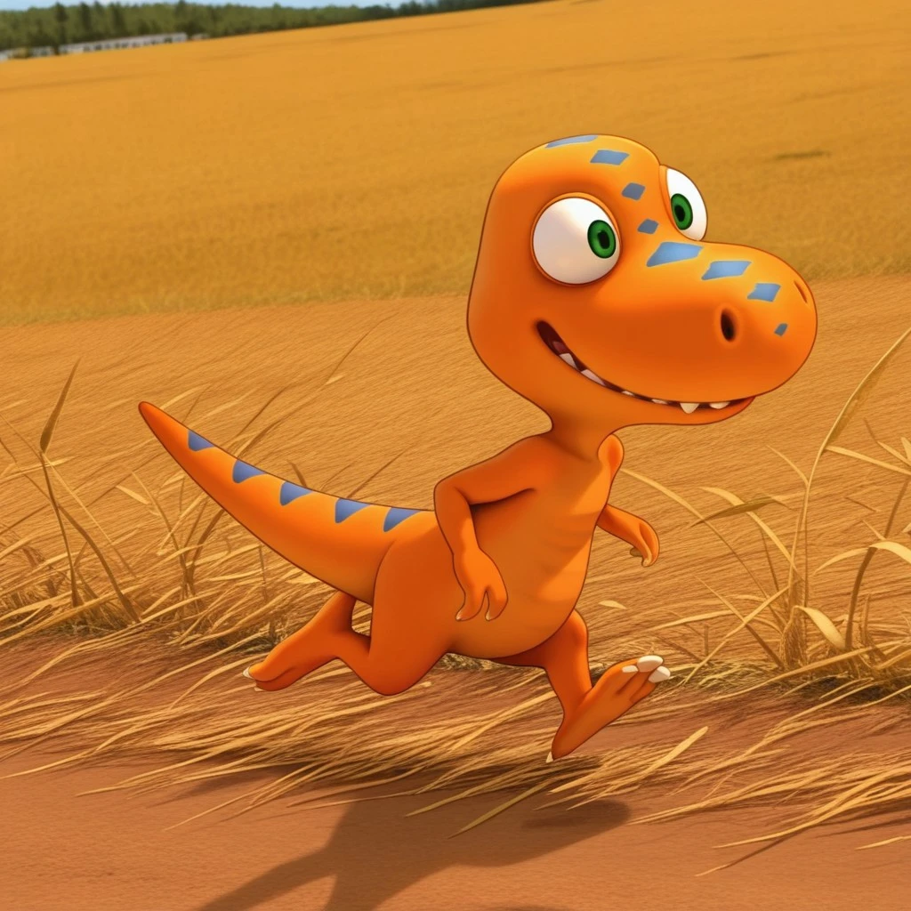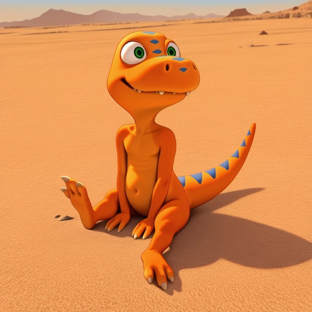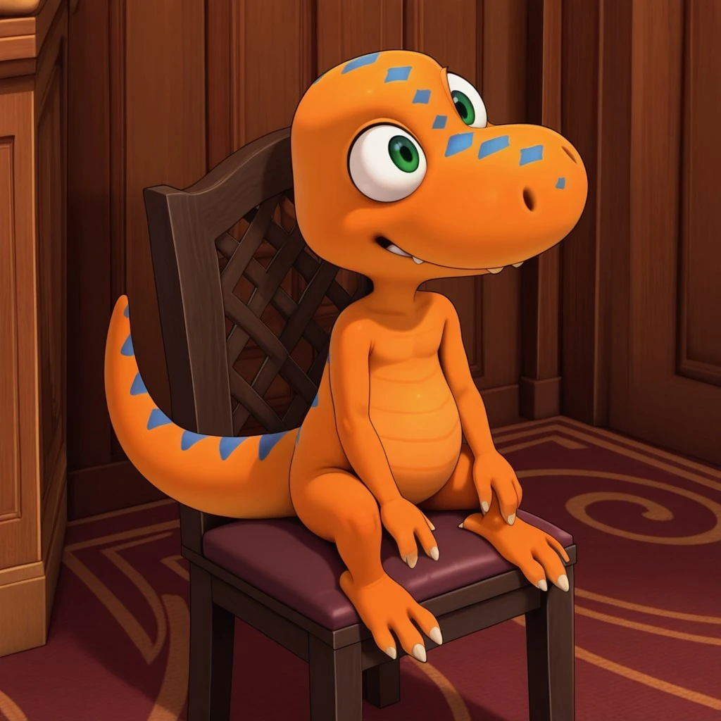 dtbuddyil, semi-anthro, male, Tyrannosaurus, orange skin, blue stripes, green eyes,