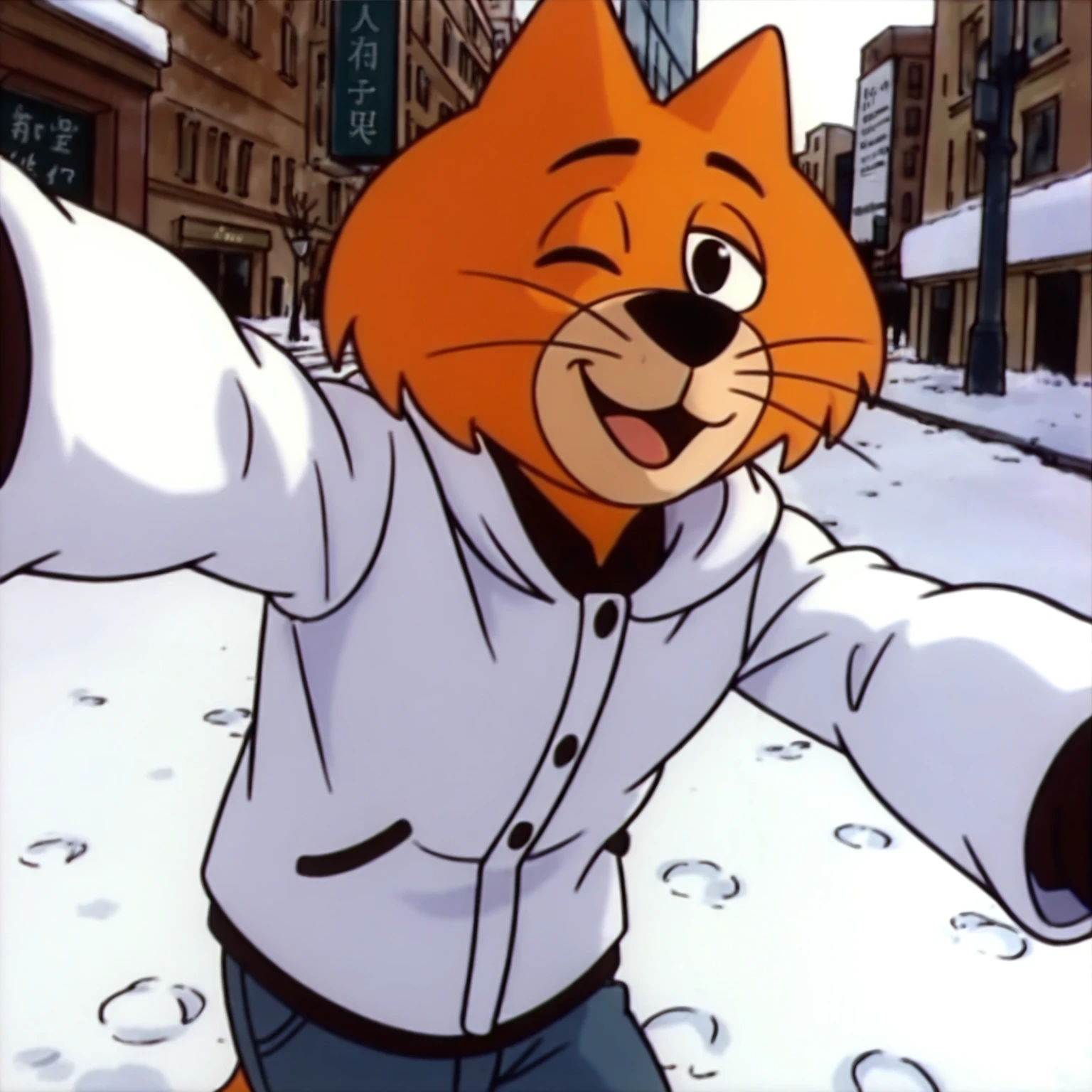 tags: "braintc, 1boy, solo, male, cat, cat_ears, cat_tail, whiskers, furry, male_cat, black_eyes, orange_fur, orange chest, orange body, orange legs"