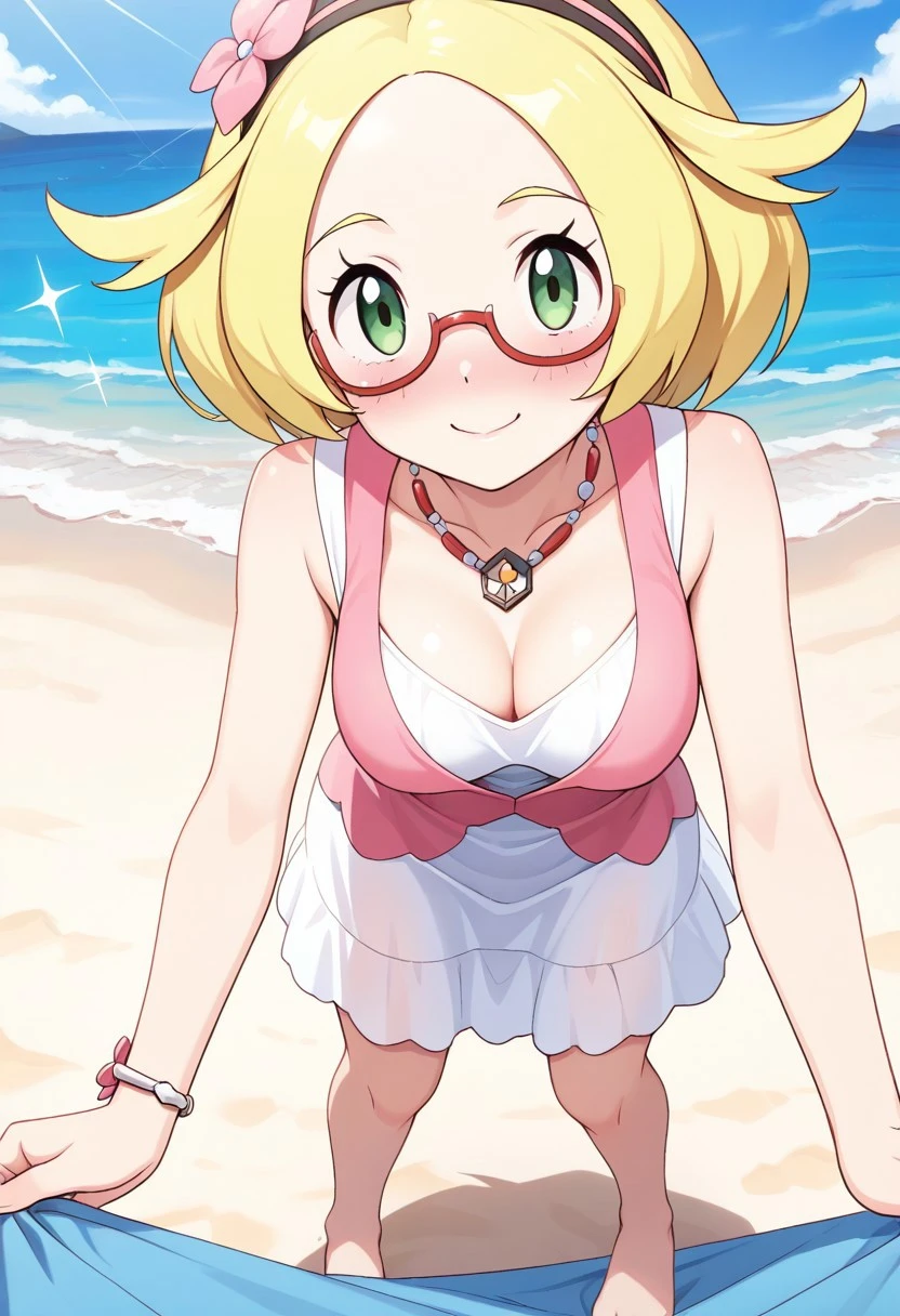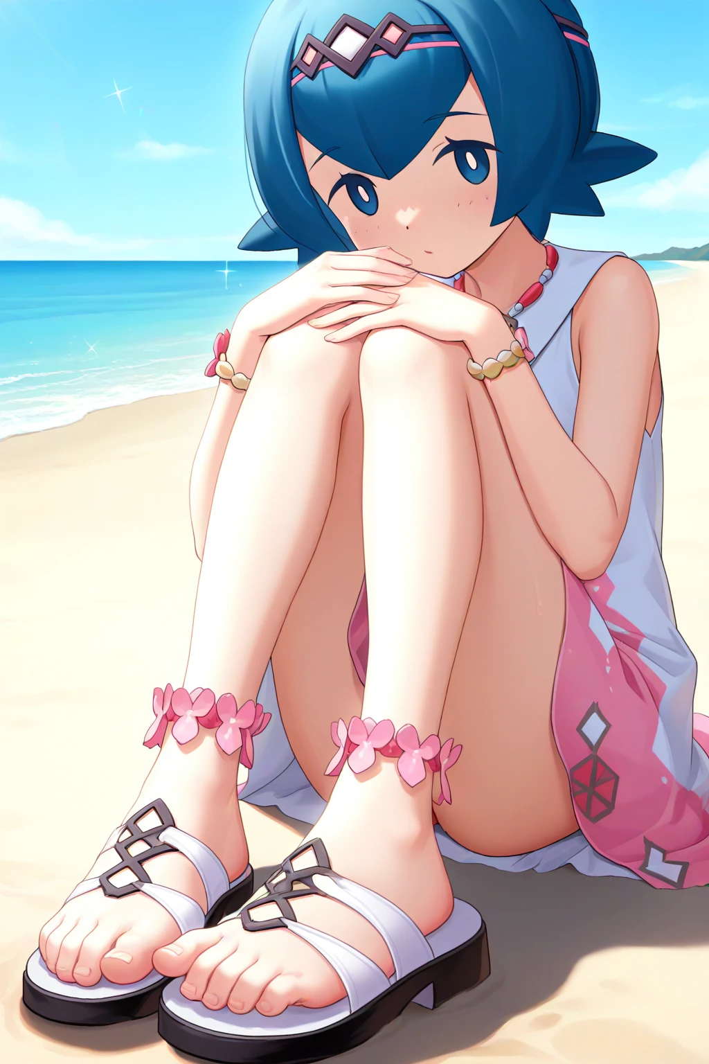 syglana, lana \(pokemon\), blue eyes, white pupils, no sclera, blue hair, short hair,
