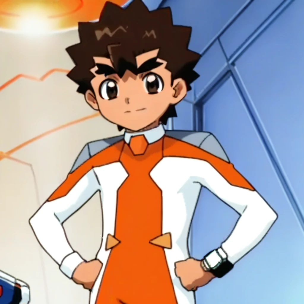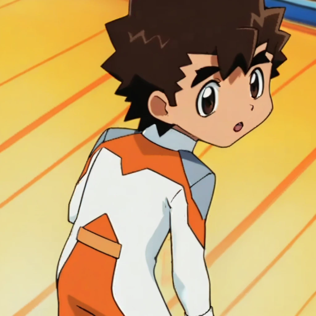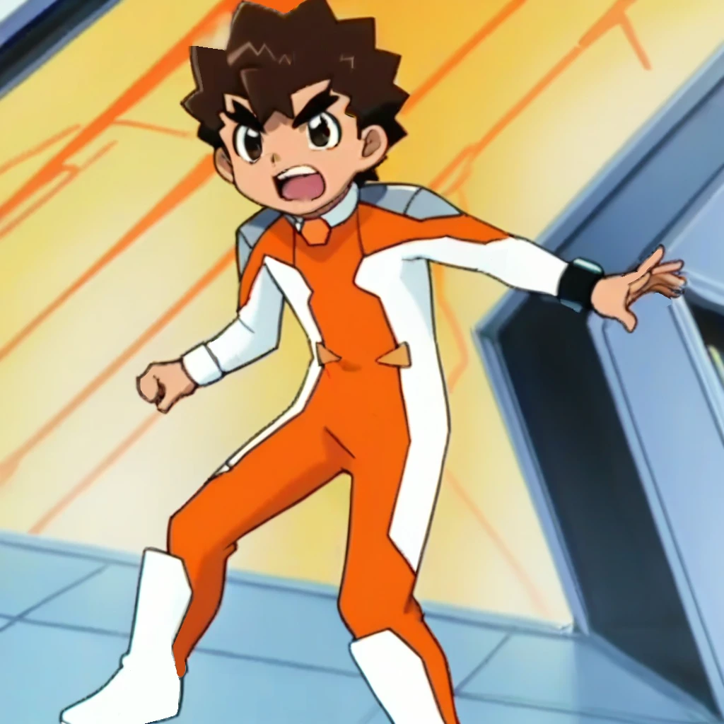 Uniform: male, brown hair, spiked hair, brown eyes, thick eyebrows, spacesuit, watch on left wrist