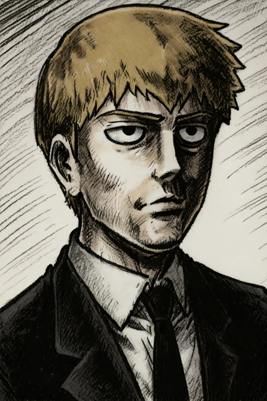 prompt 3 : mob_psycho_funny_face, monochrome, greyscale, impact lines, meme, parody,