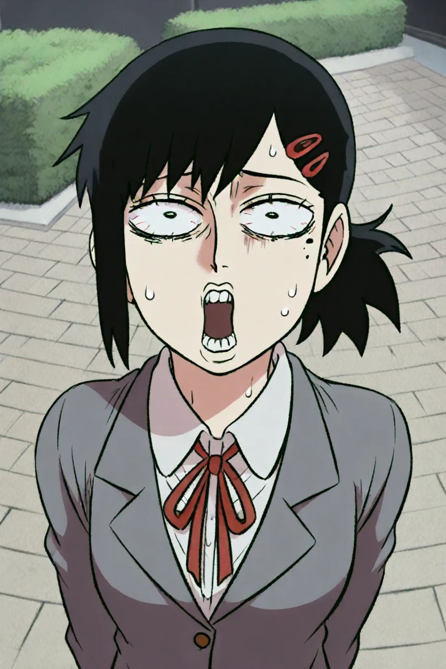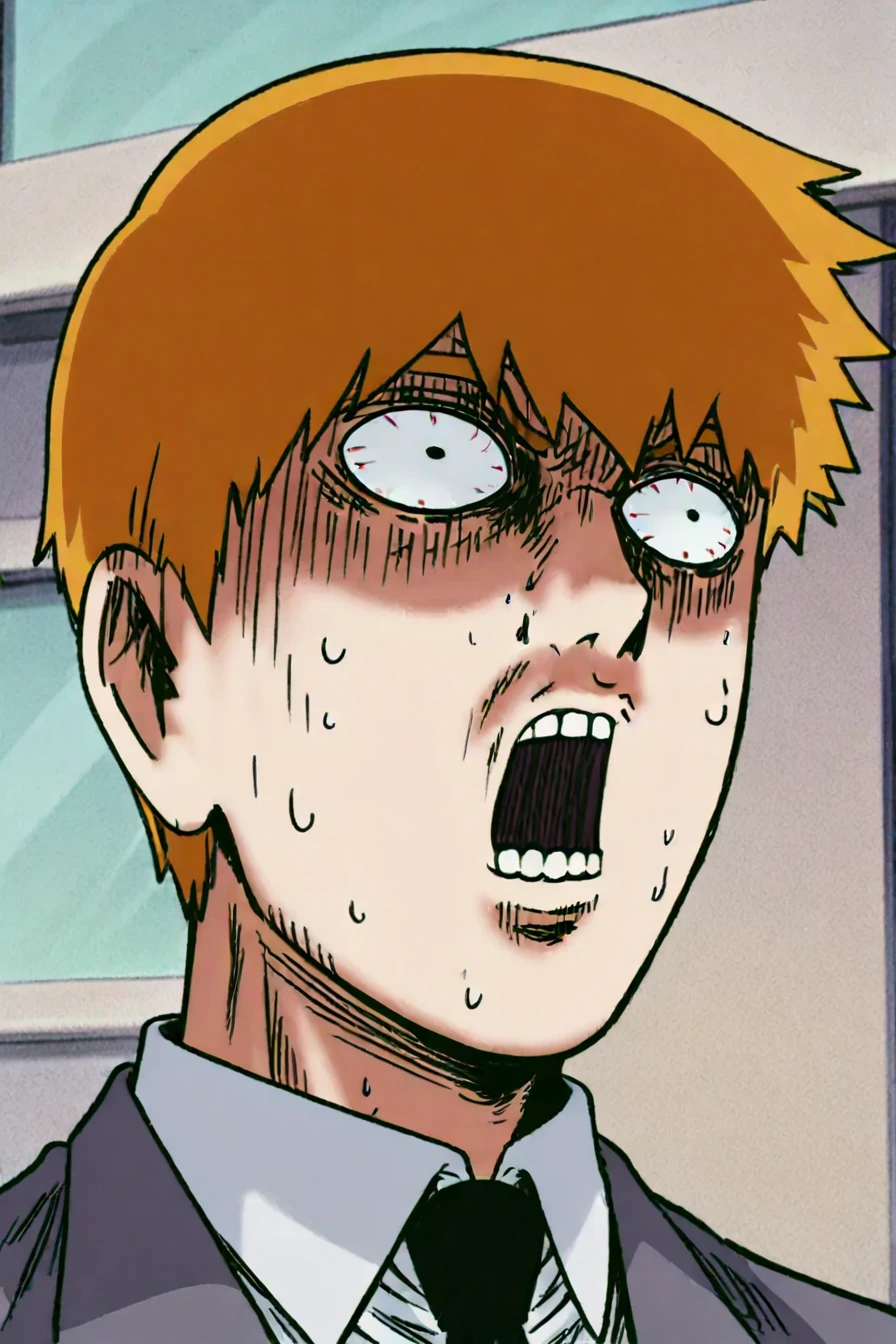 prompt 2 : mob_psycho_funny_face, snot, exaggerated expression, impact lines, sweat, eyes vein lines, wide-eyed, looking at the viewer, parody, meme