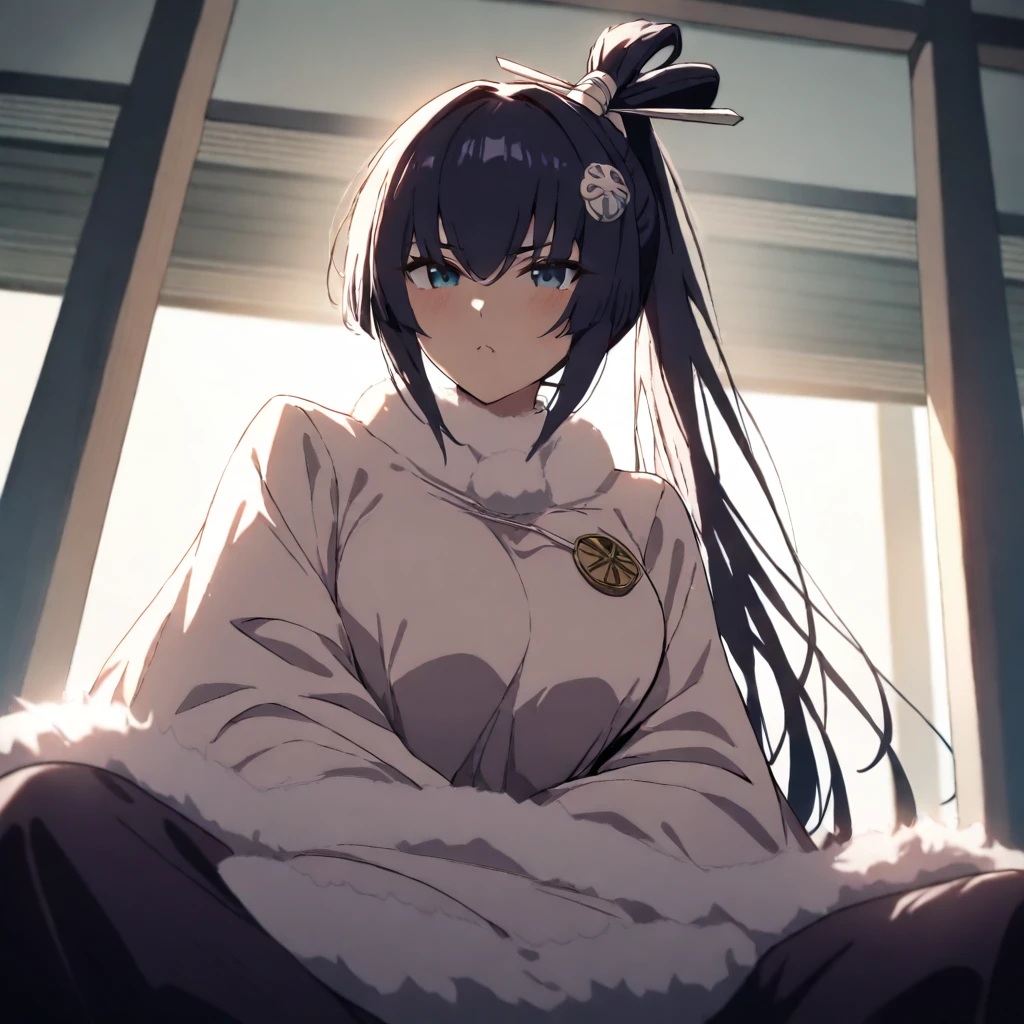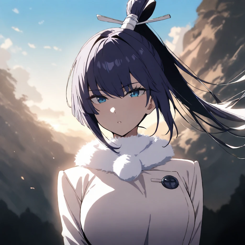 yuuhi, blue hair, ponytail, hair ornament, blue eyes