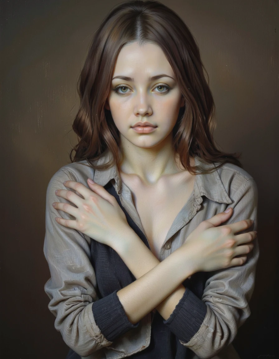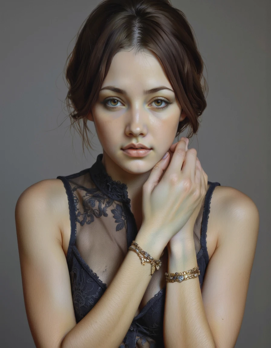 Full portrait likeness has been removed, since there was no such goal in training, this is a creative rethinking of photographic works