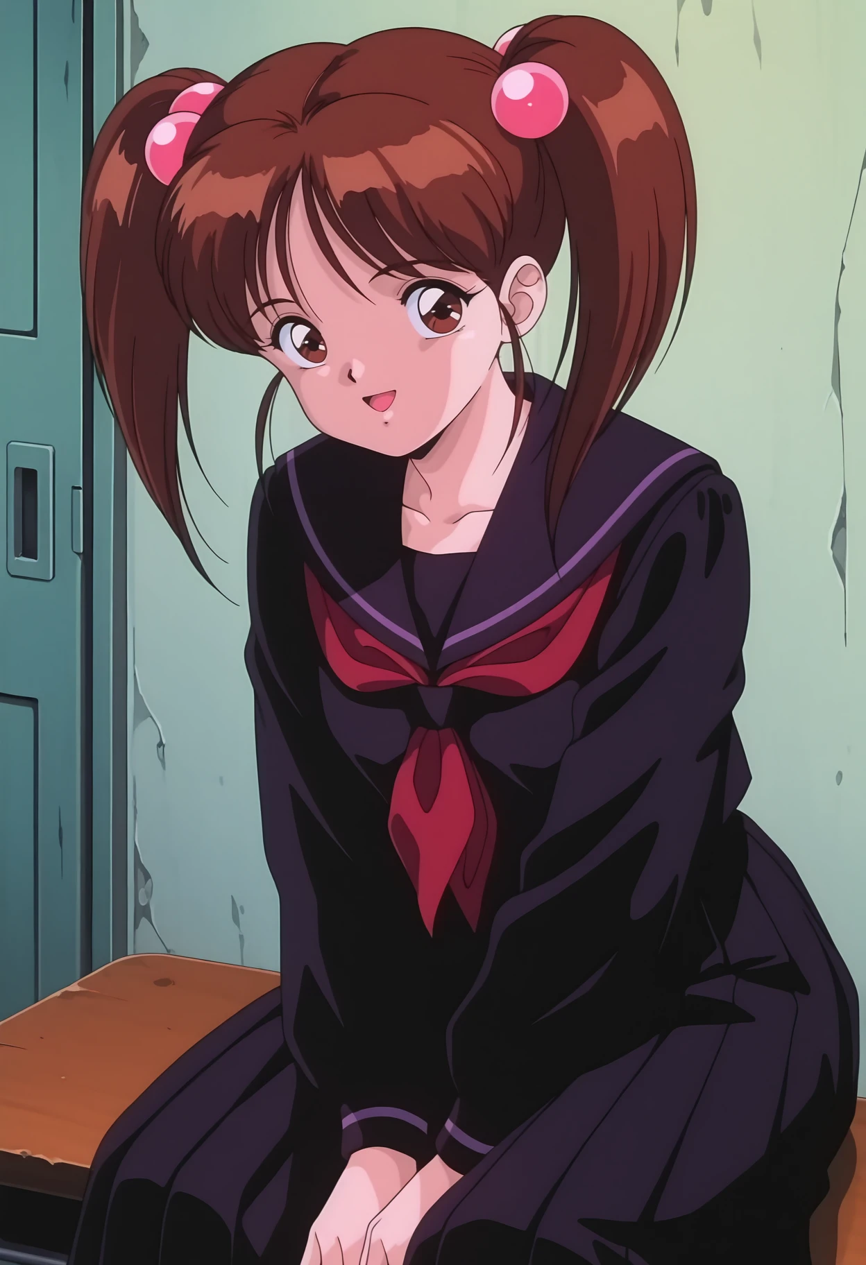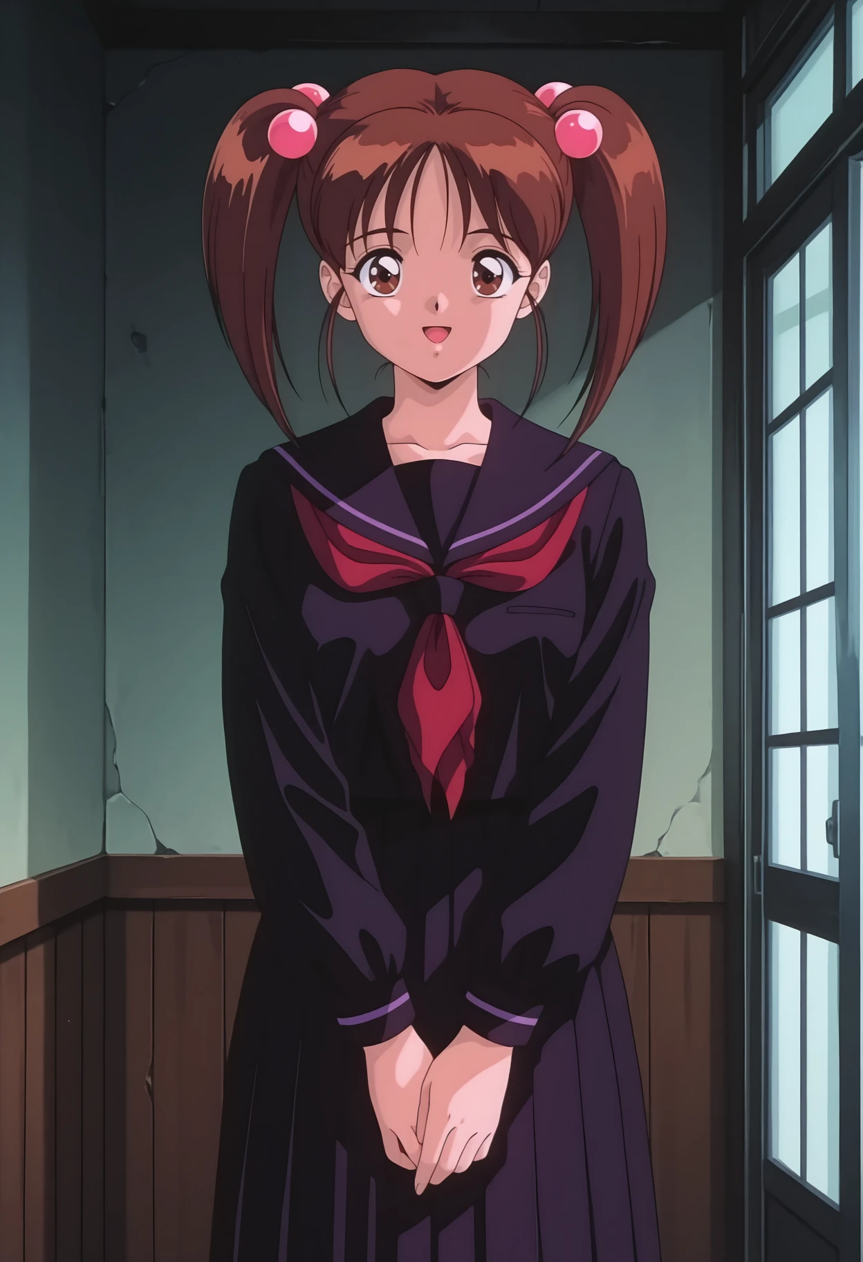 knshmchi, twintails, brown hair, hair bobbles, brown eyes,