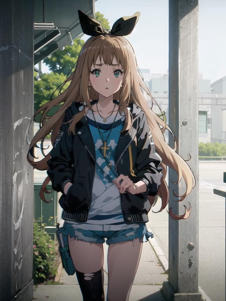 a girl,green eyes,hair ribbon