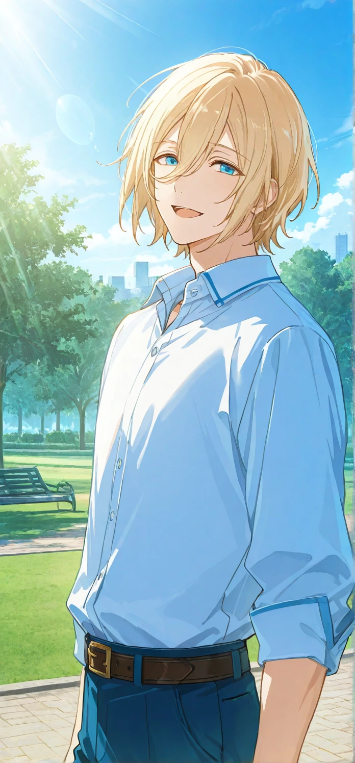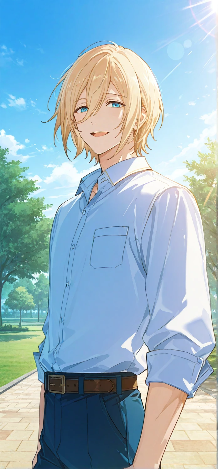 Trigger words: tenshouin eichi,blonde hair,hair between eyes,blue eyes