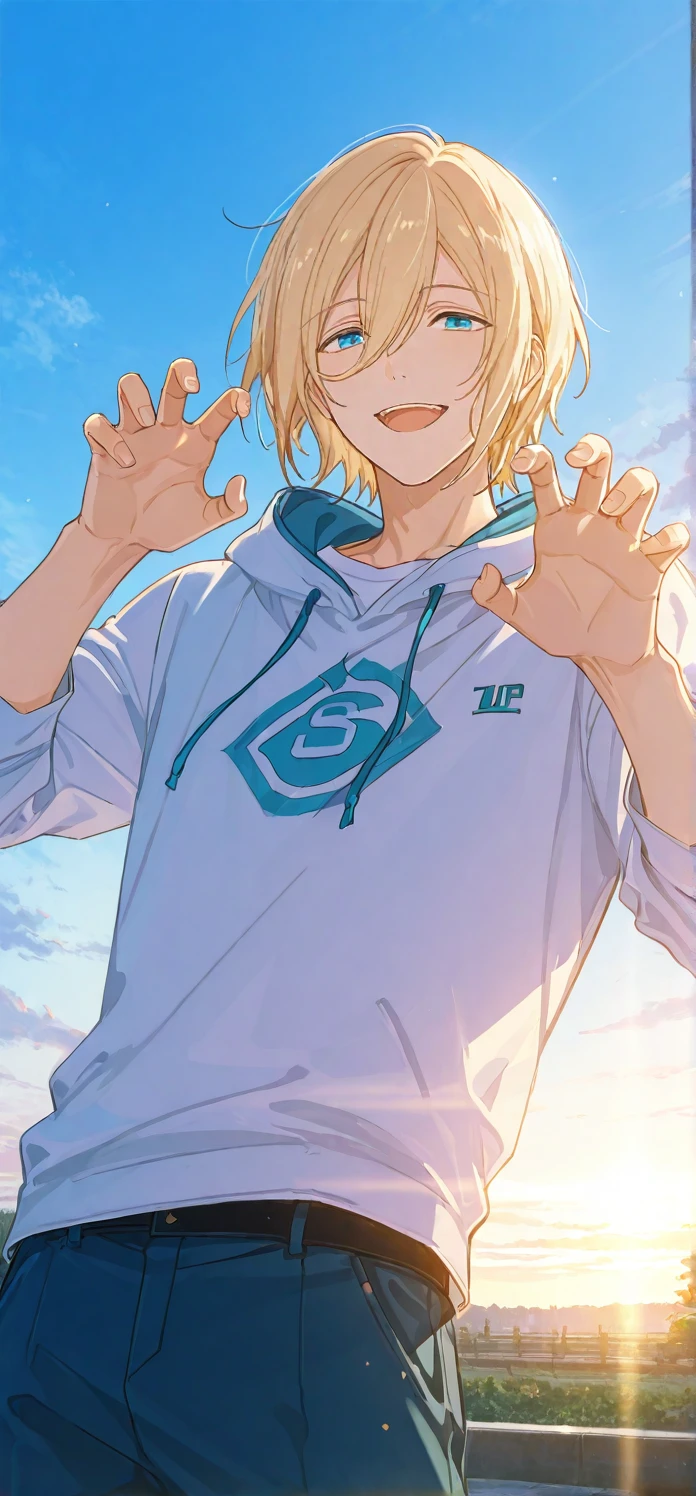 tenshouin eichi,blonde hair,hair between eyes,blue eyes