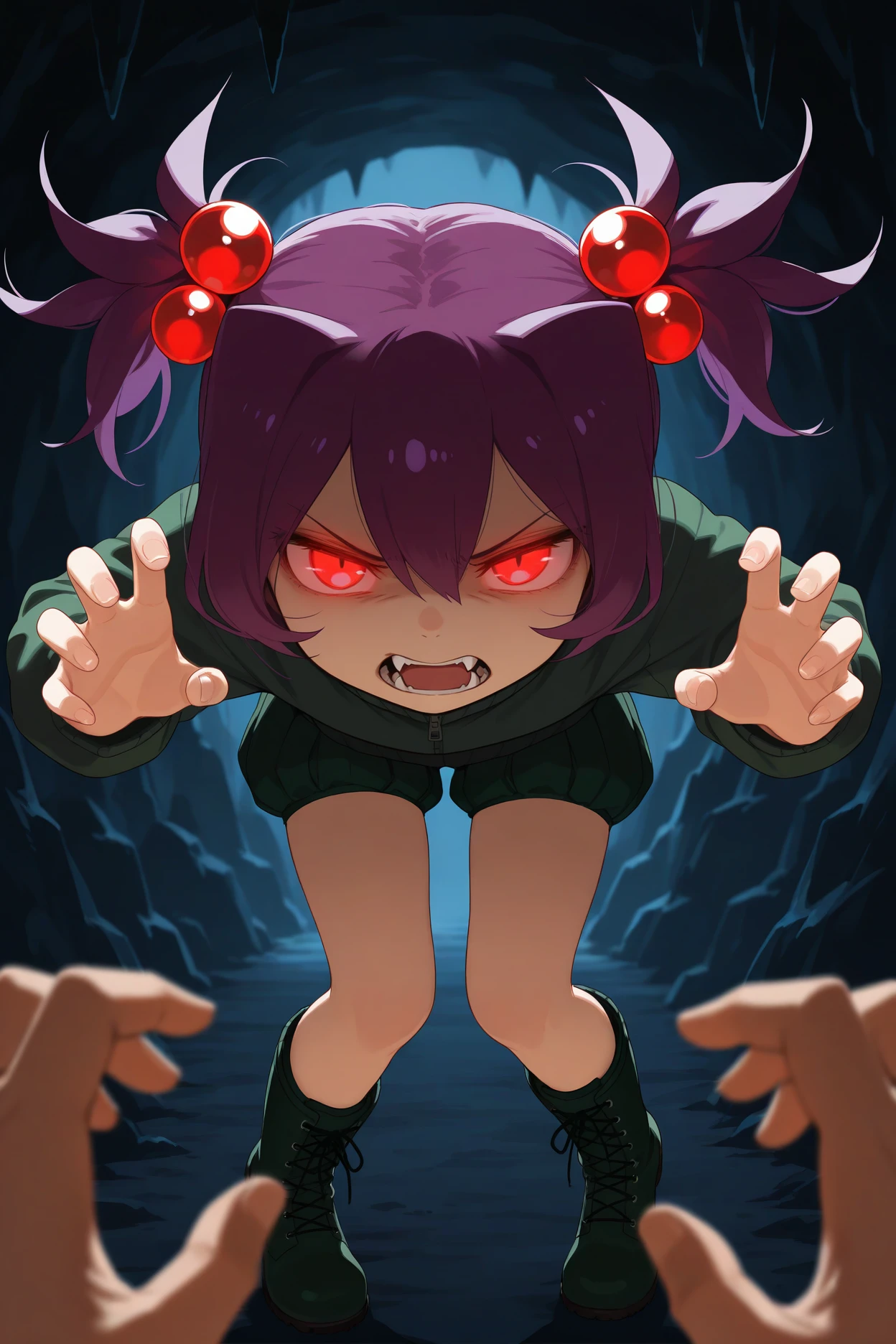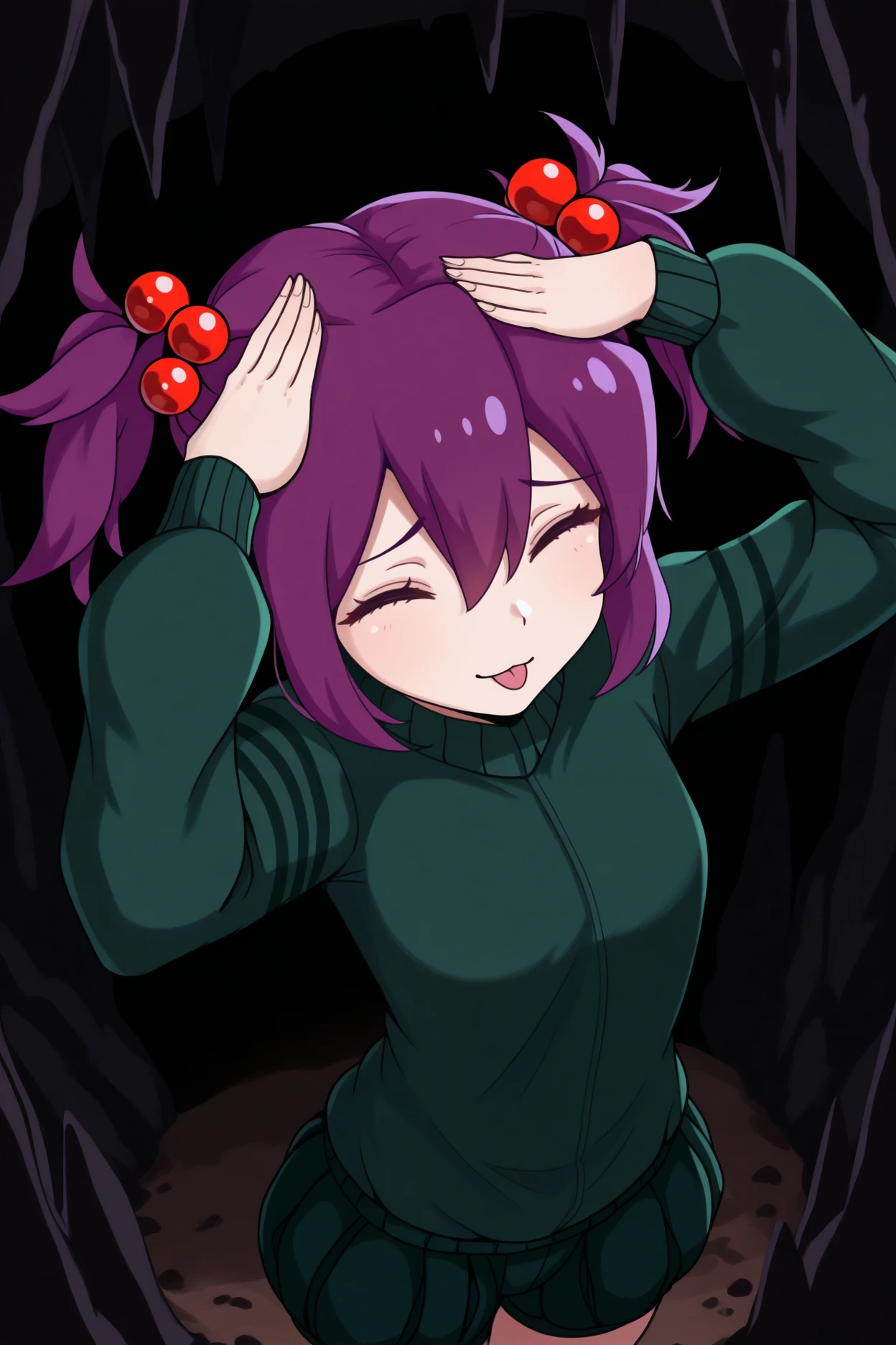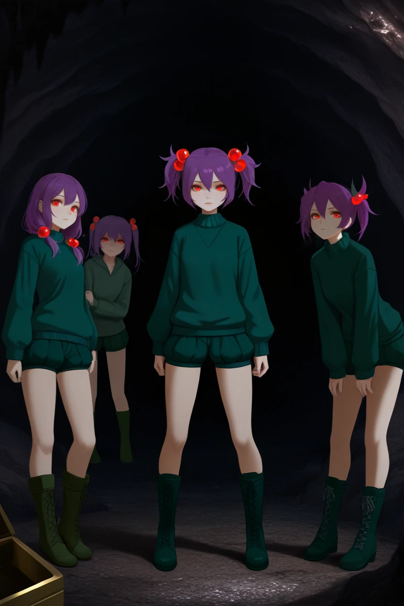 mtcs, purple hair, short twintails, red eyes, hair bobbles