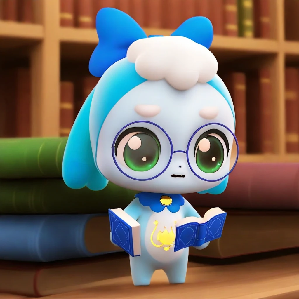 Dadaping, male, fairy, blue, glasses, green eyes, white hair, white eyebrows, blue hair bow
