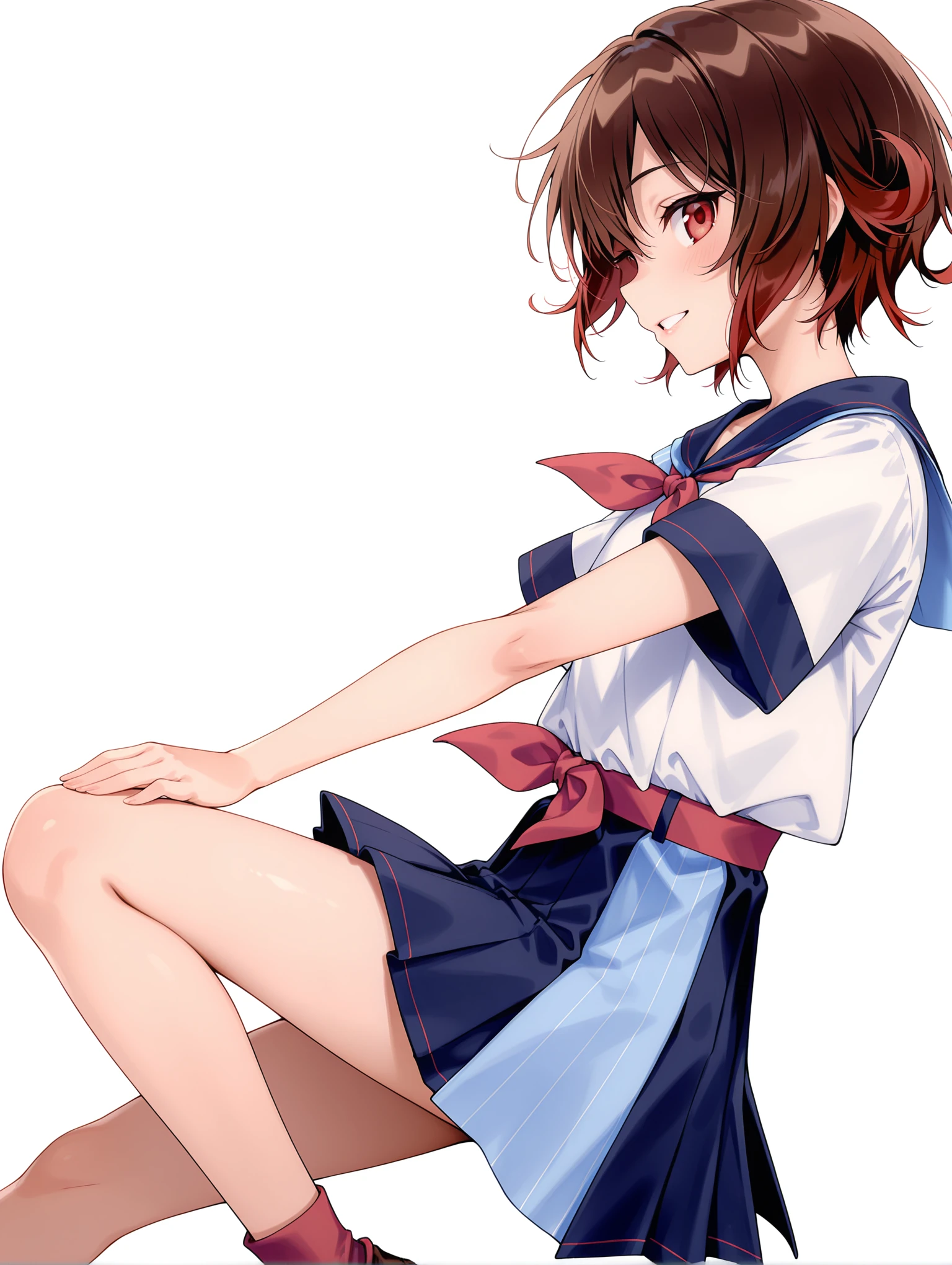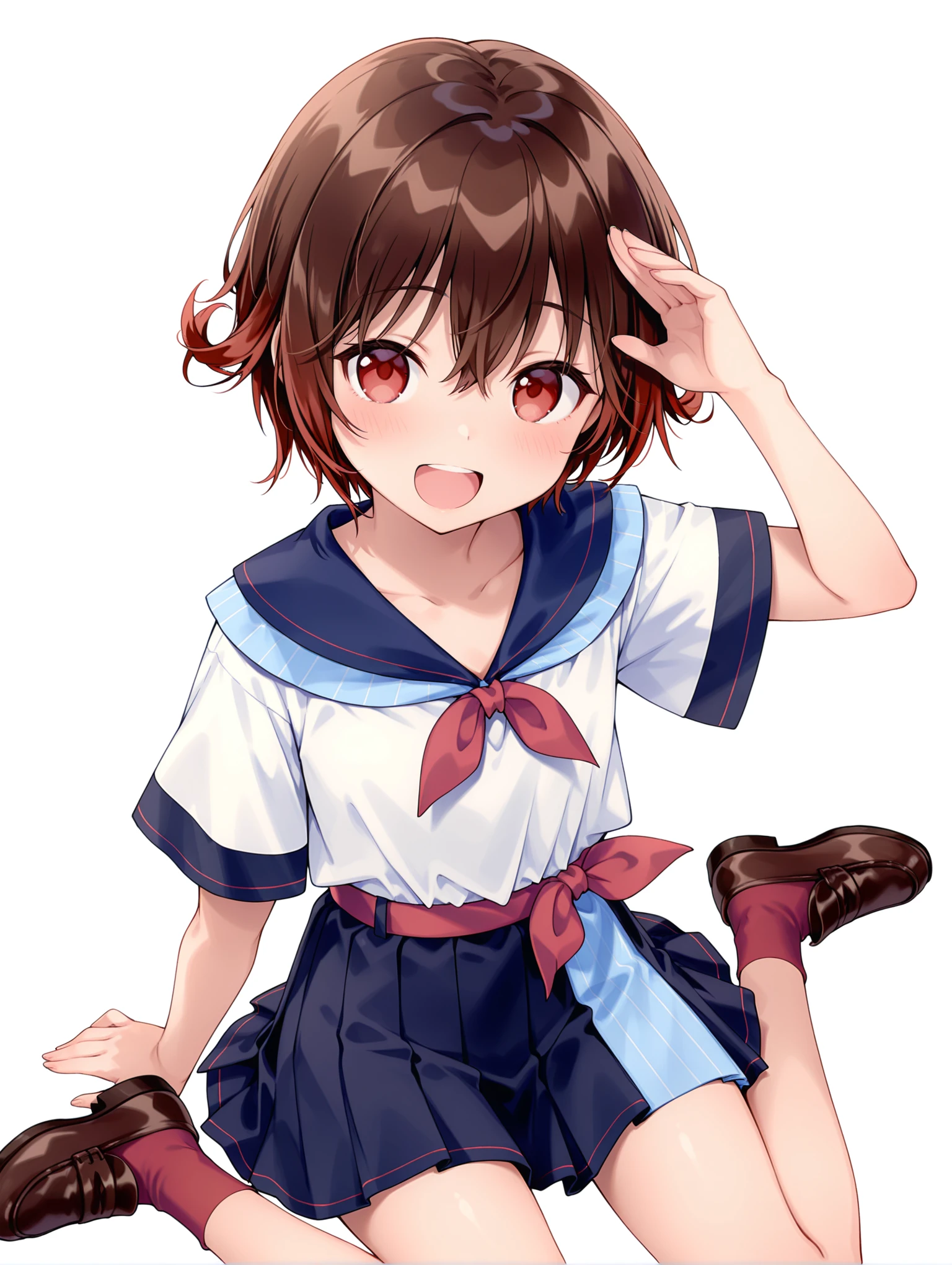m_z_clothes,short sleeves,white shirt,blue sailor collar,red neckerchief,miniskirt,red socks,loafers,
