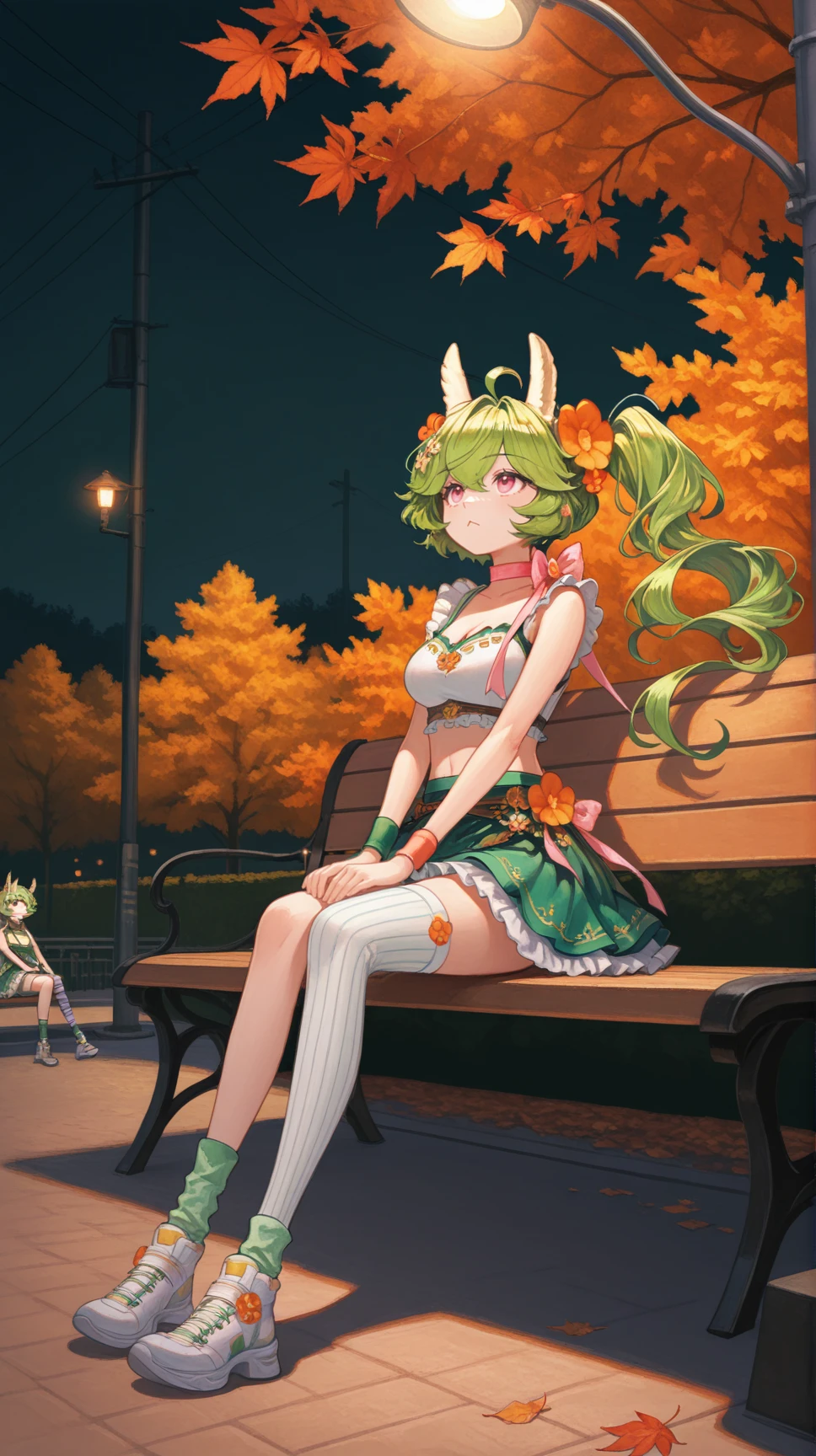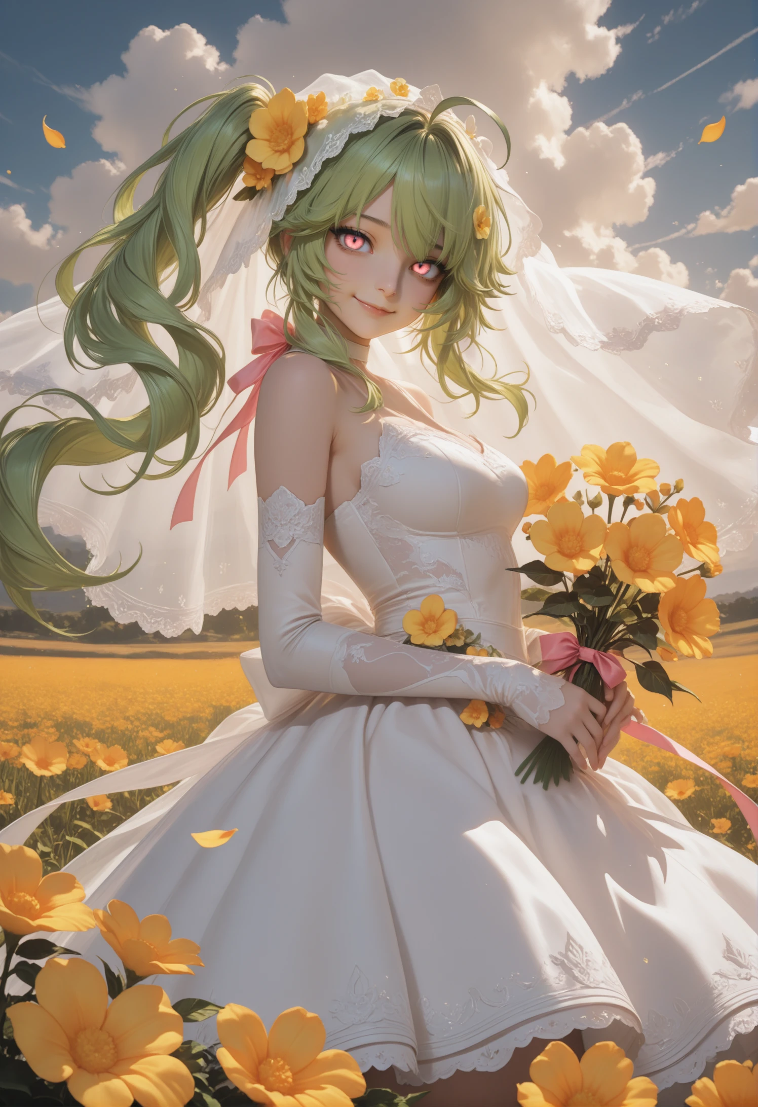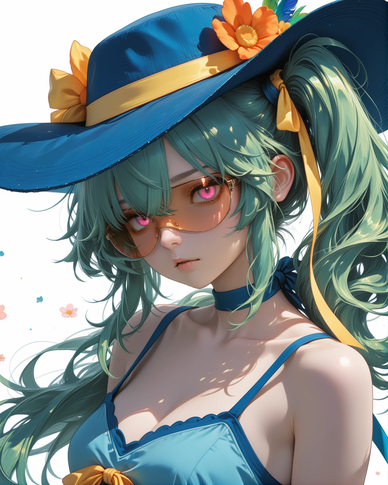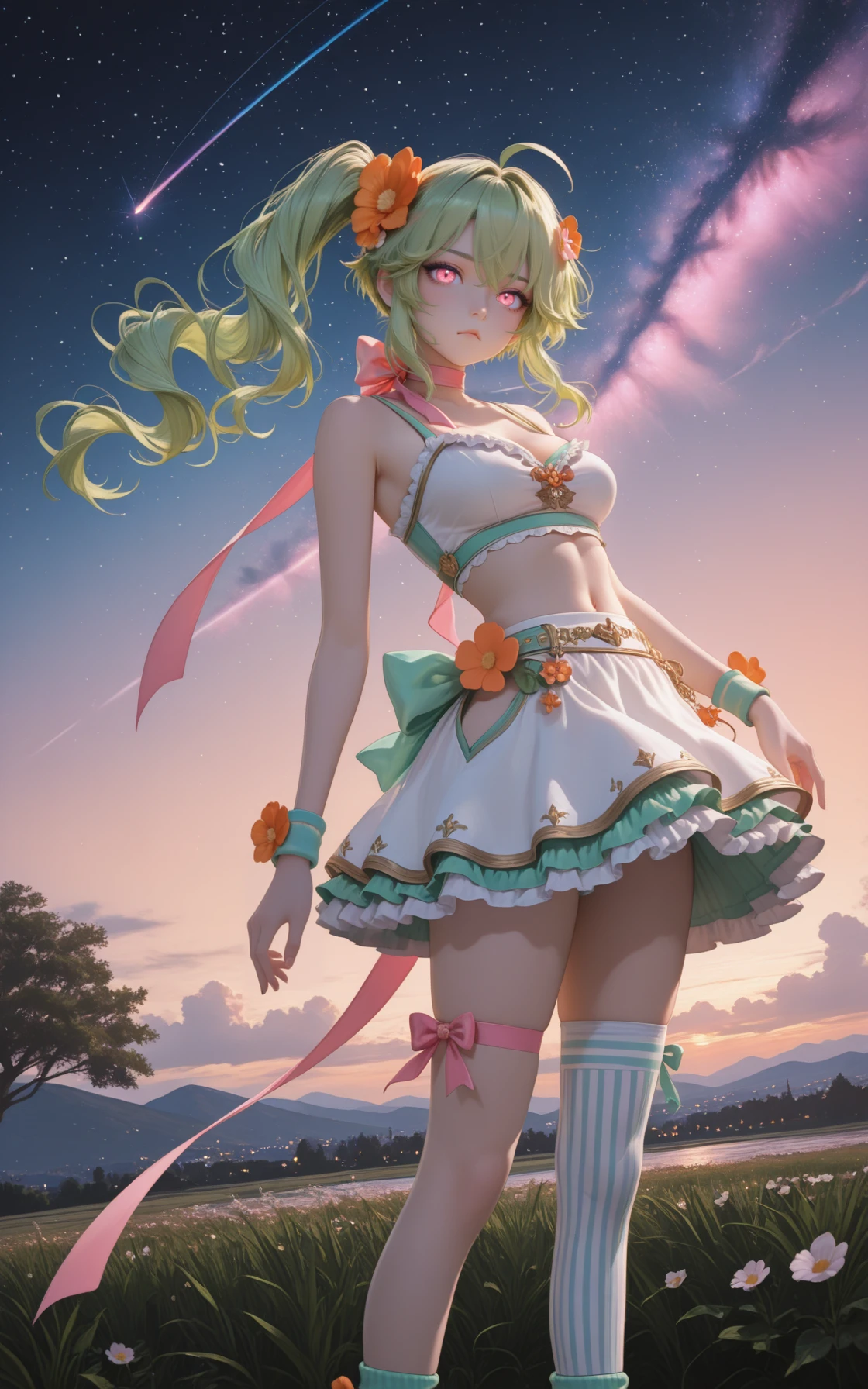 Tags标签标签: ahoge,green hair,long hair,pink eyes,unilateral ponytail,unilateral side ponytail,