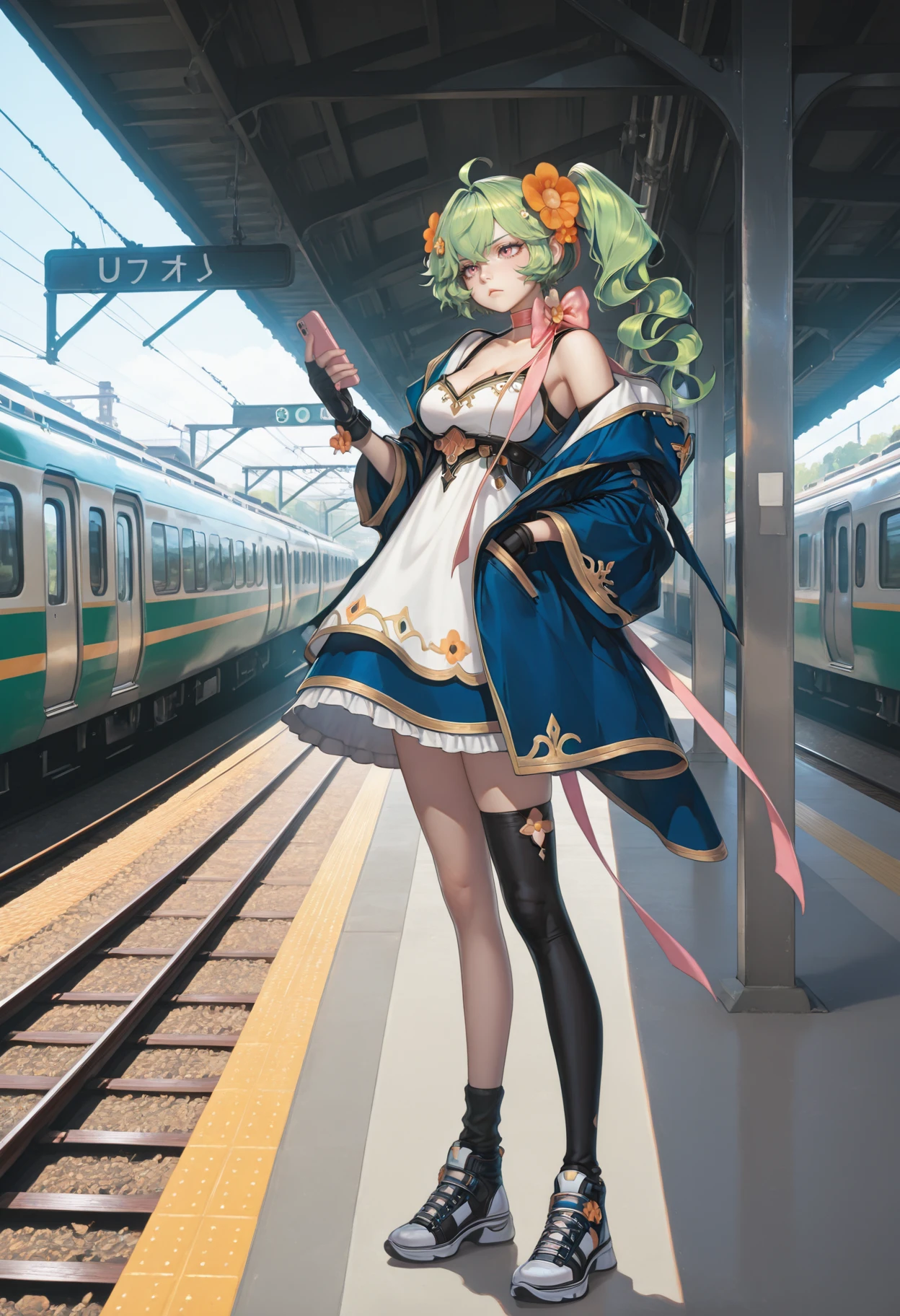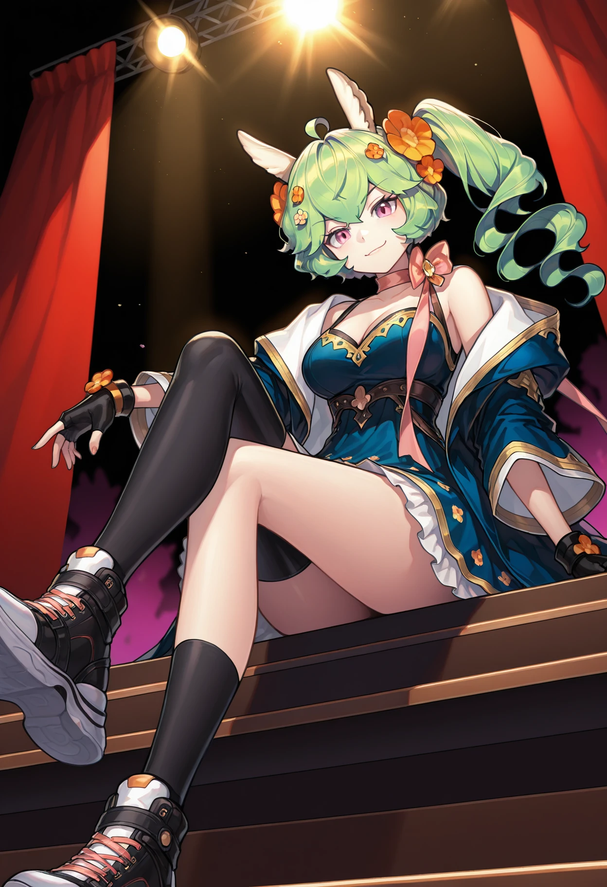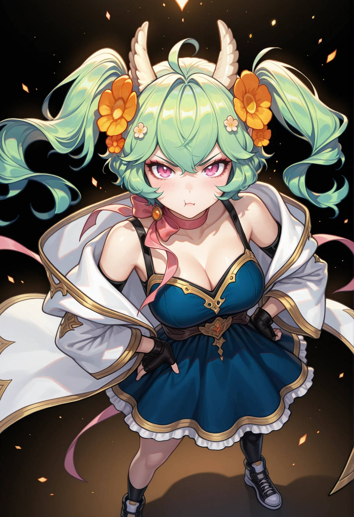 Optional clothing tags衣服1 :diyitao,diyimeryl asymmetrical legwear,diyimeryl black socks,diyimeryl black thighhighs,cleavage,diyimeryl fingerless gloves,diyimeryl crinkled dress,diyimeryl orange hair flowers,diyimeryl white and blue dress,diyimeryl sneakers,diyimeryl pink neck bow,diyimeryl long blue tunic with gold trim,ribbon,