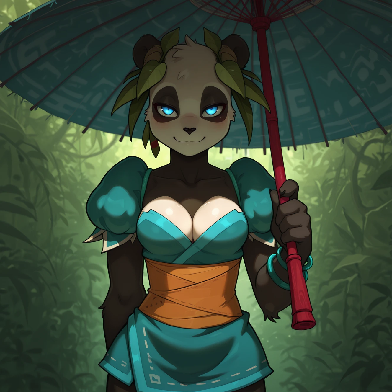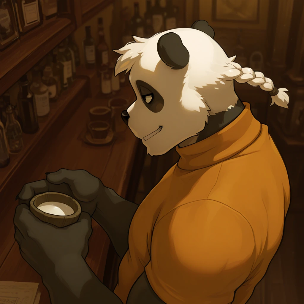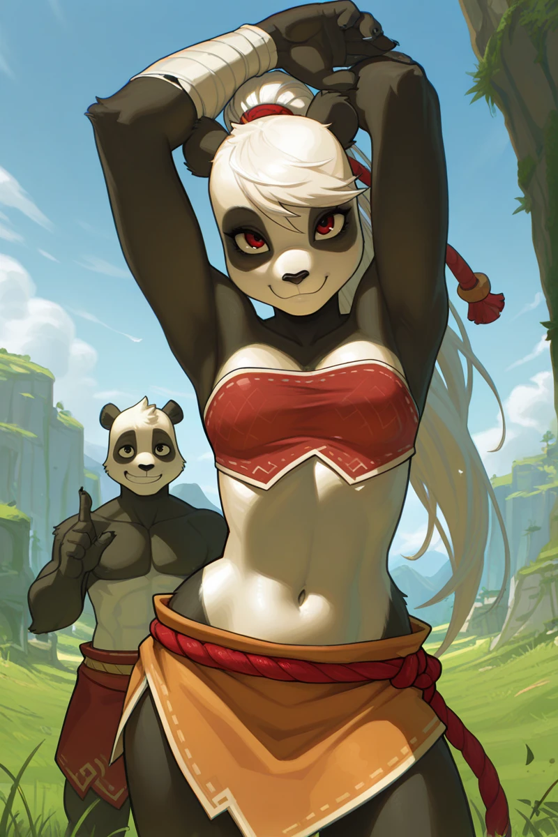 pand4w4_w4kfu, anthro, giant panda, two tone body, black nose, animal ears,