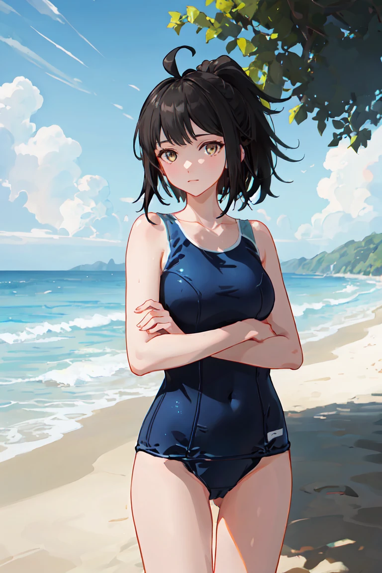 在使用其它衣物时,请将【yellow_tactical_jacket, bodysuit_under_clothes, black_gloves, uneven_legwear, thigh_strap, hair_ornament, 】移除并放入负面提示词。