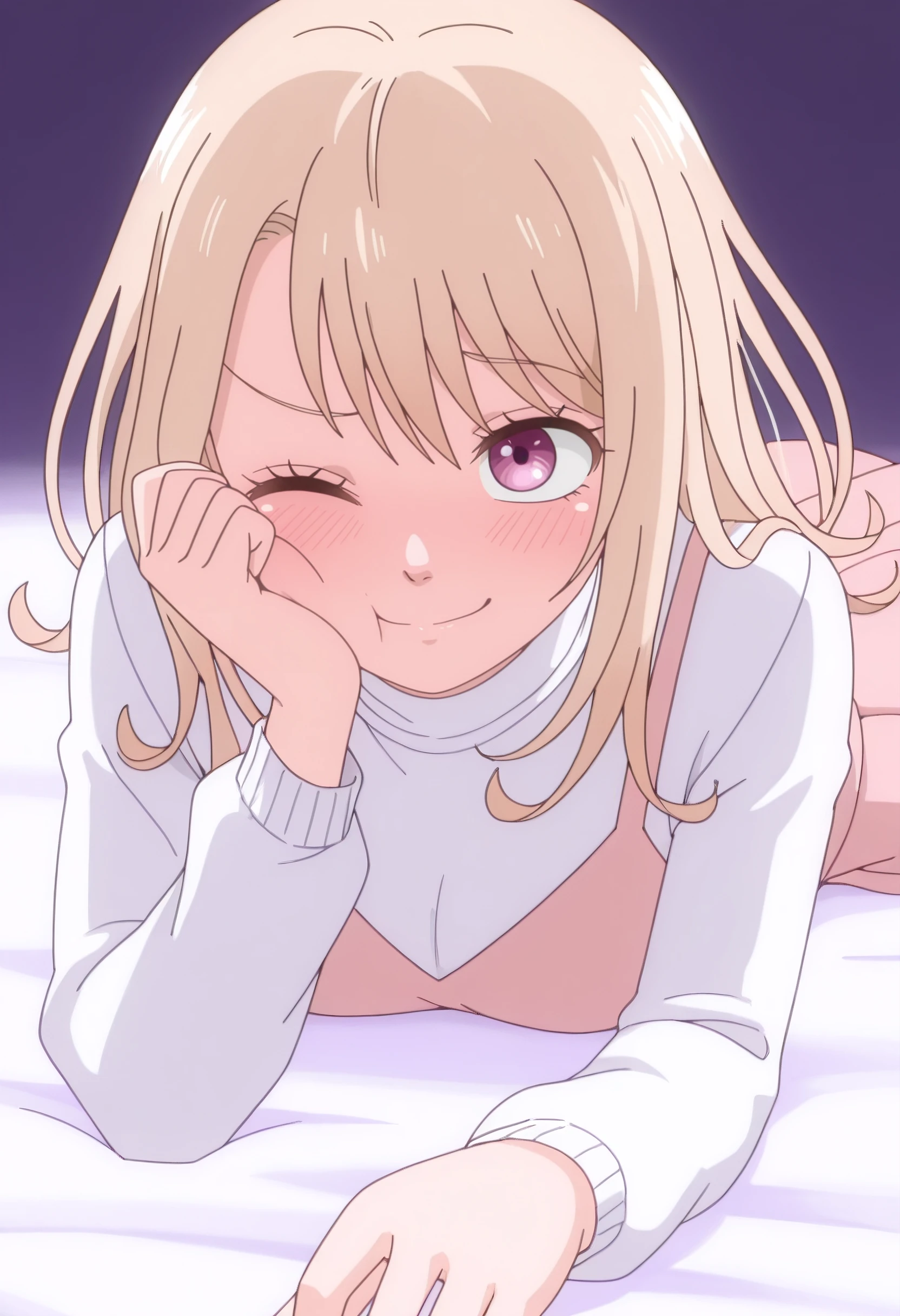 KMNMona, blonde hair, pink eyes, long hair,