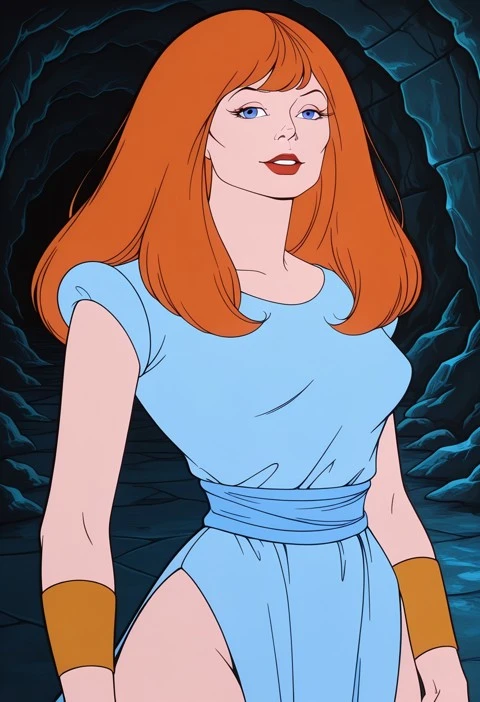 1girl, blue eyes, long hair, orange hair, lipstick, red lips, makeup,