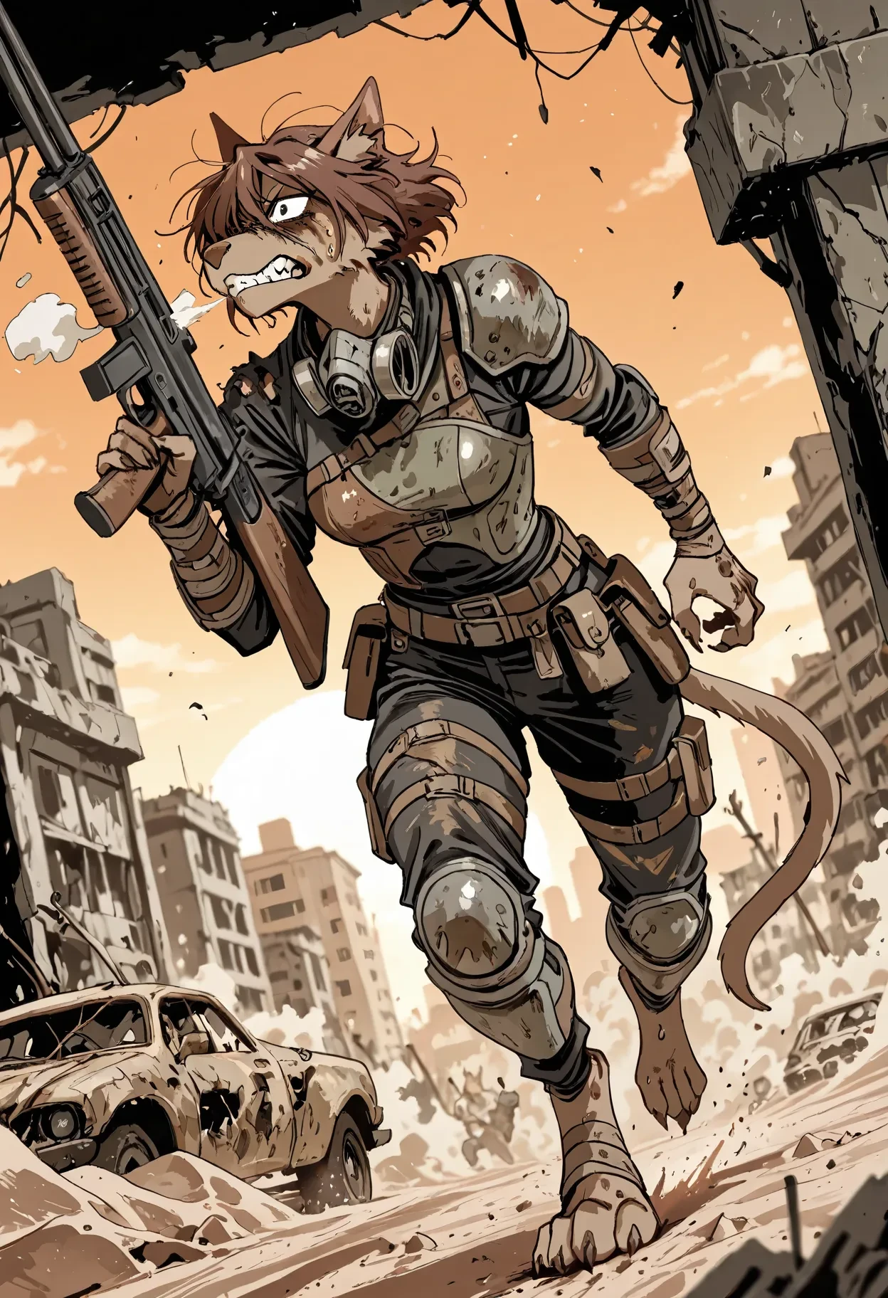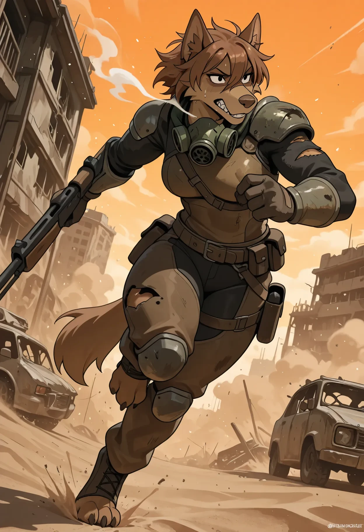 oliac, female, furry, anthro, black eyes, brown fur, brown body, brown nose, brown hair, short hair, canine, ears, tail,
